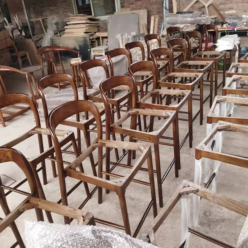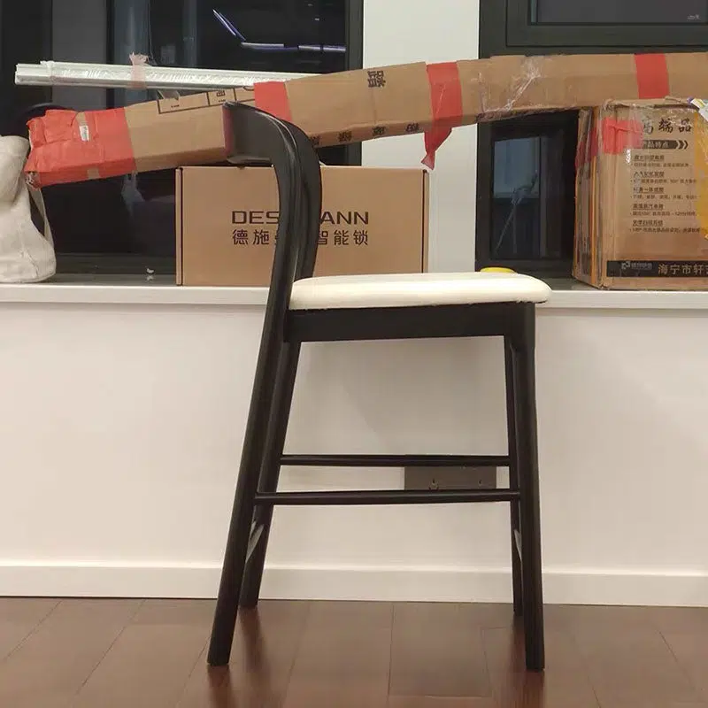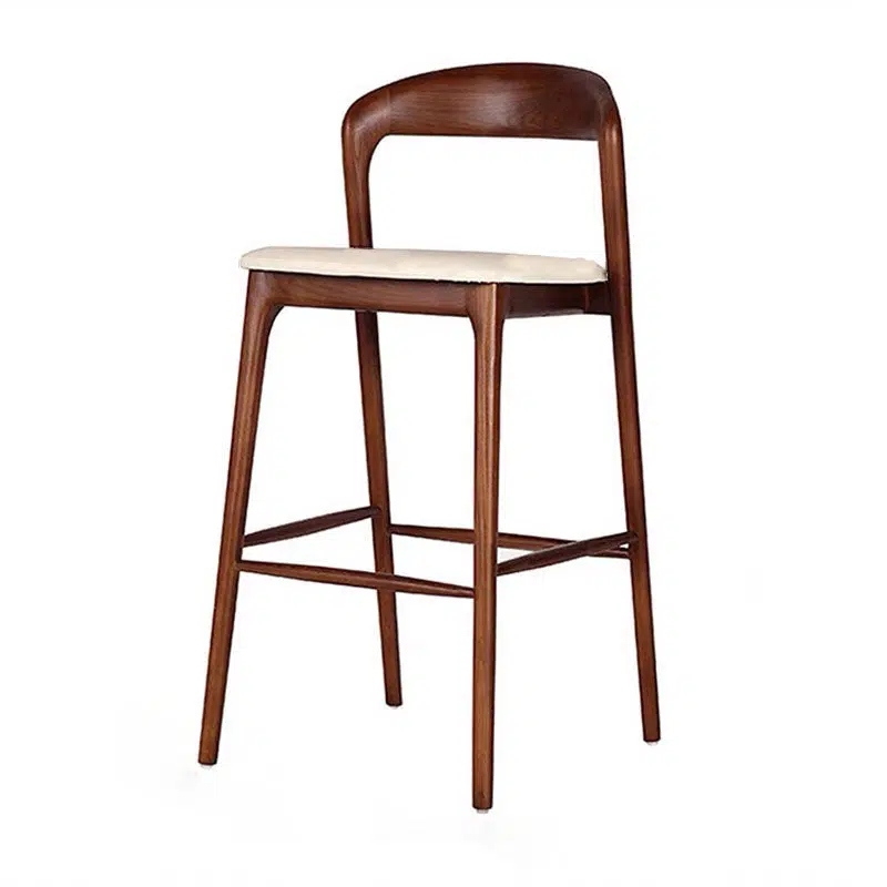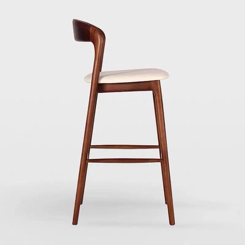Contemporary Retro Square Solid Wood Frame Leather Upholstered Bar Stool Low Back Footrest For Dining Room