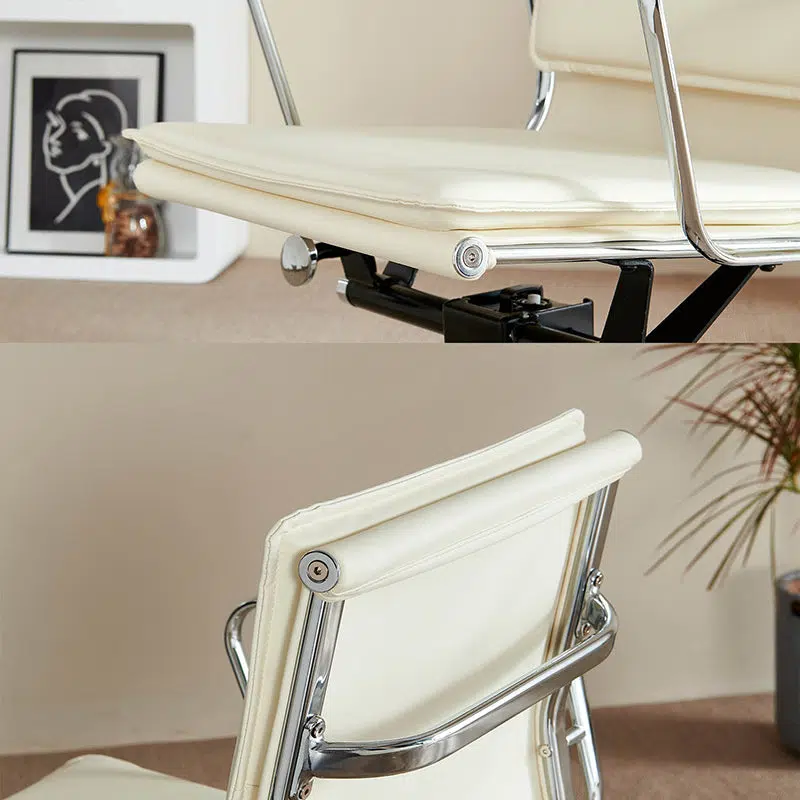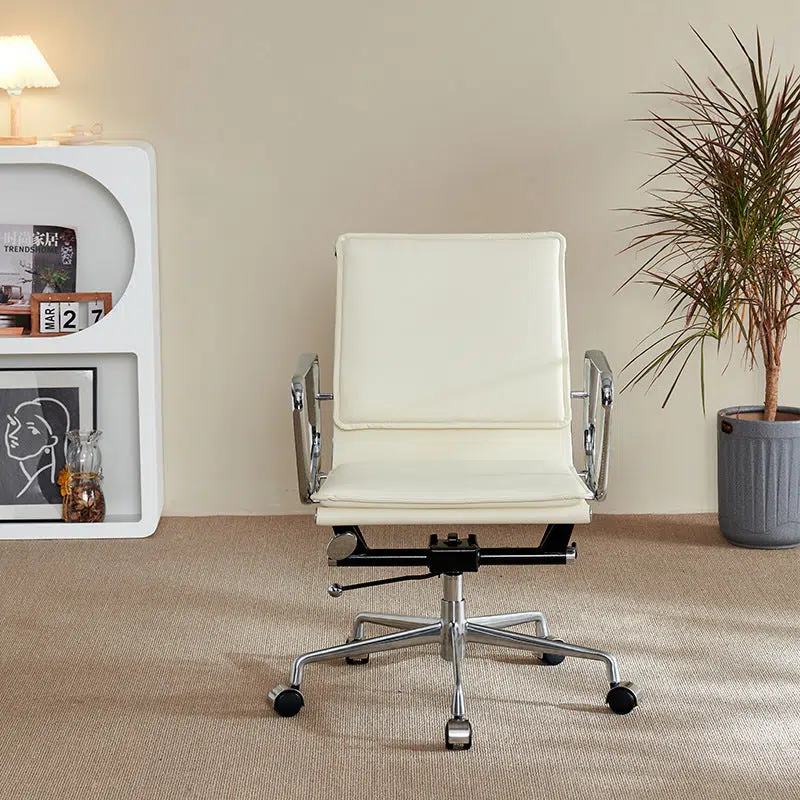 Contemporary Retro Square Upholstered Leather Aluminum Desk Chair Backrest Armrest For Home Office