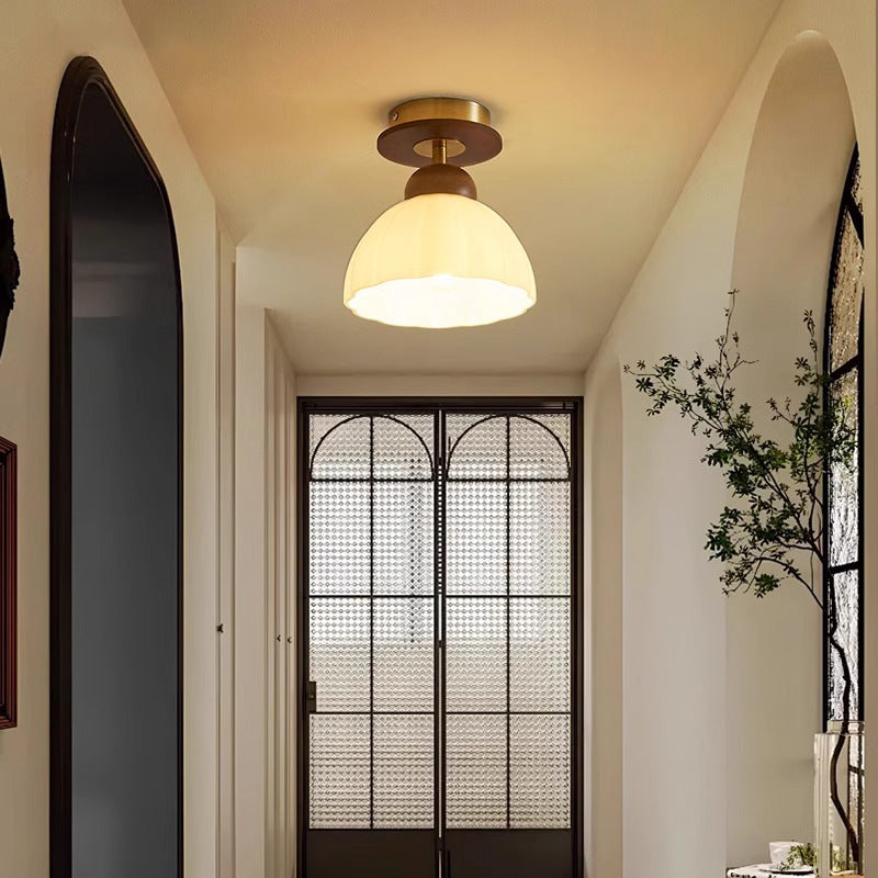 This contemporary retro ceiling light combines walnut wood. metal. and a floral-shaped white glass shade to deliver a timeless look with eye-friendly illumination. Designed for living rooms and entryways. its natural finish and durable build offer both elegance and reliability.
