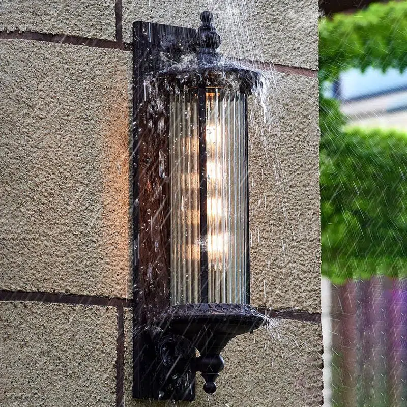 Contemporary Retro Waterproof Aluminum Glass Cylinder 1-Light Wall Sconce Lamp For Garden