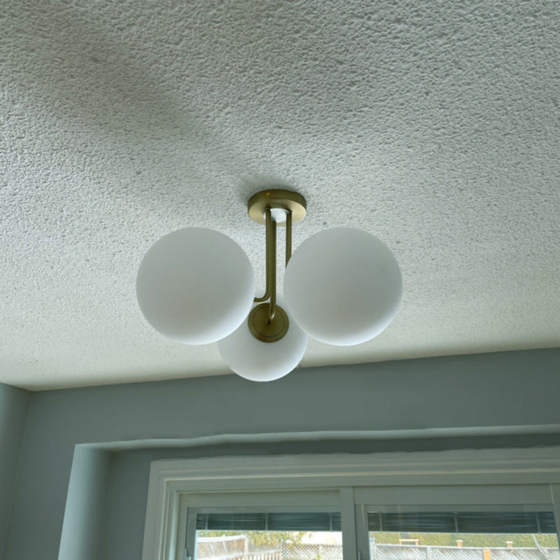 Contemporary Scandinavian Brass Glass Globe 3-Light Semi-Flush Mount Ceiling Light For Bedroom & Living Room