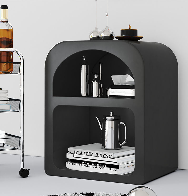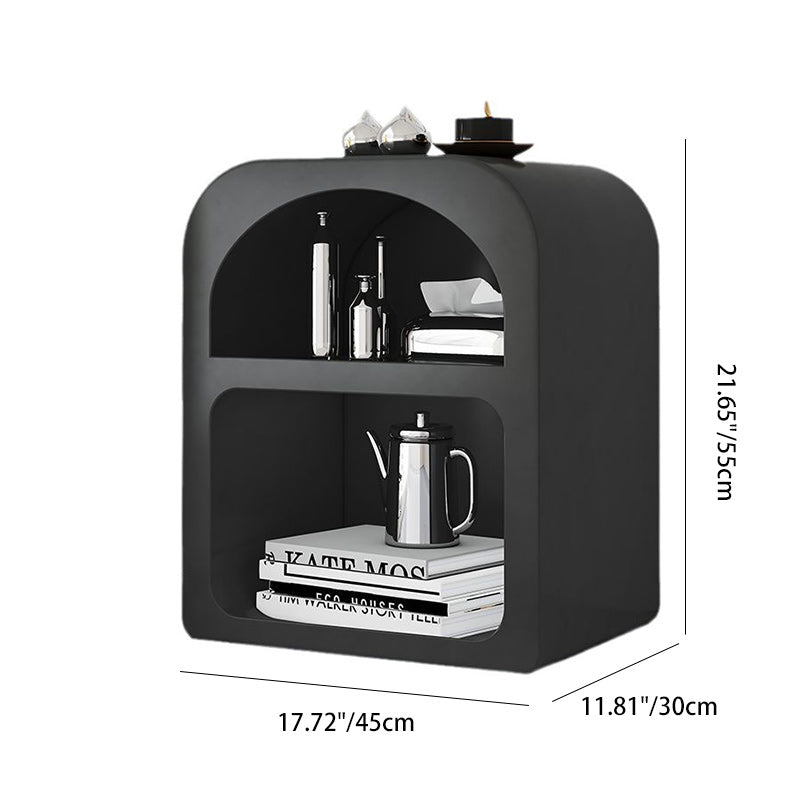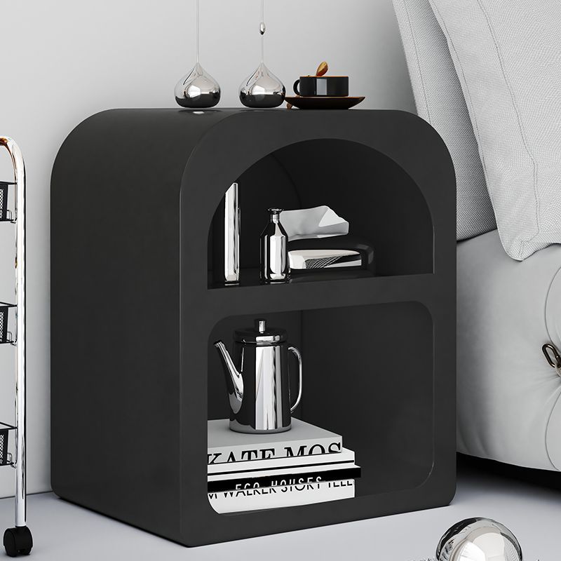 Contemporary Scandinavian Cave Square Curved Rock Slab Nightstand 2-Tier For Bedroom