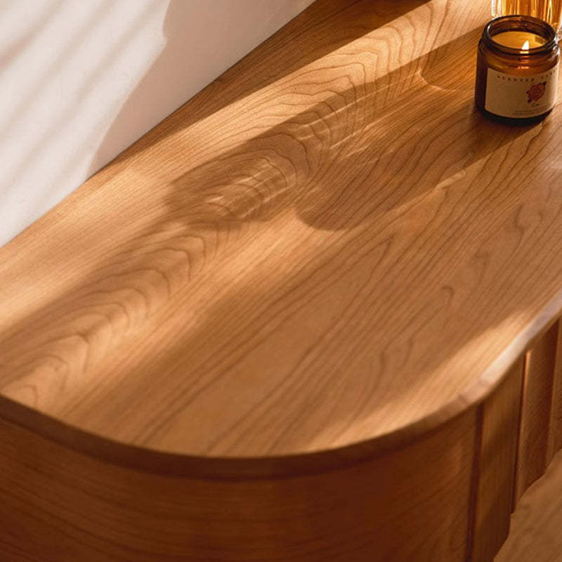 Contemporary Scandinavian Cherry Wood Semi-Circular Wavy Drawer Console Table With 2-Tier Storage For Entryway