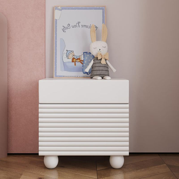 Contemporary Scandinavian Cream Square Density Panel Nightstand 2-Drawer For Bedroom