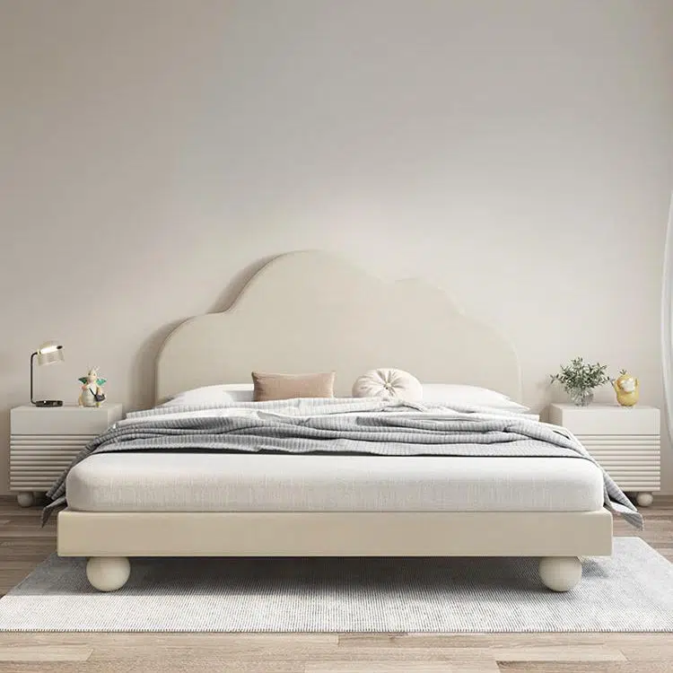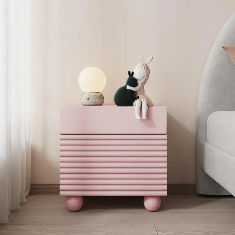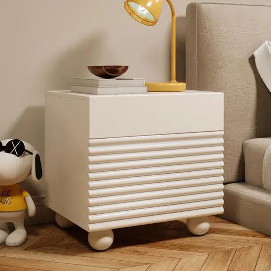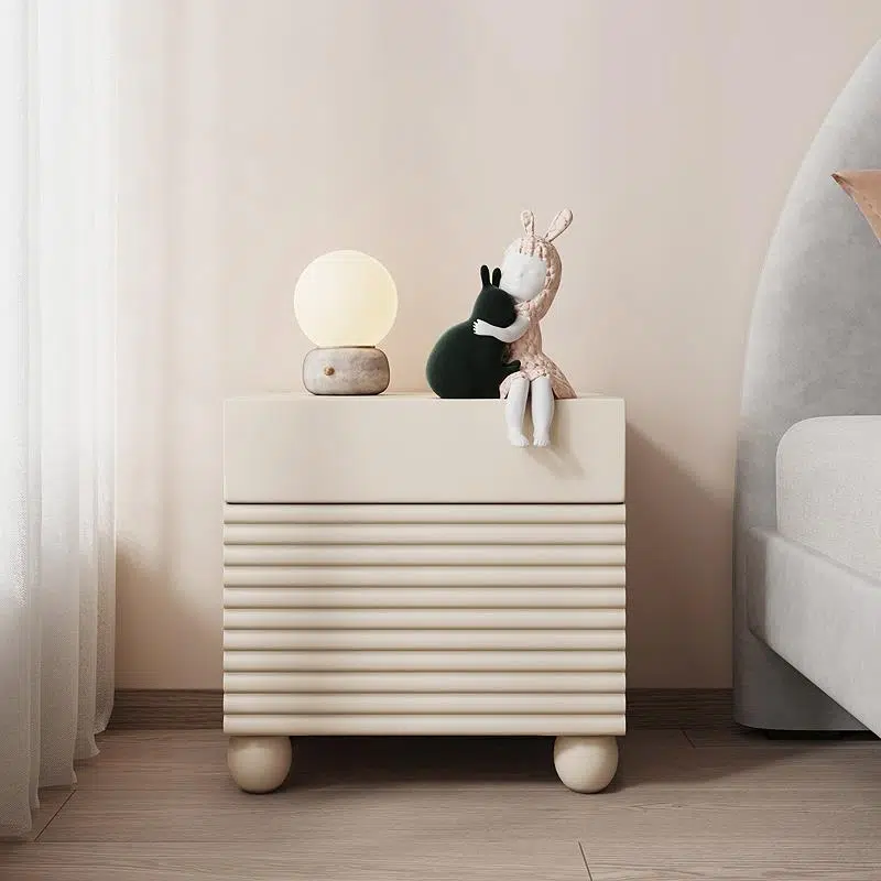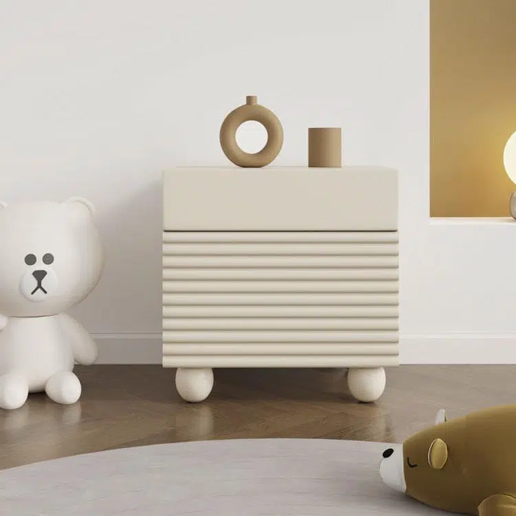 Contemporary Scandinavian Cream Square Density Panel Nightstand 2-Drawer For Bedroom