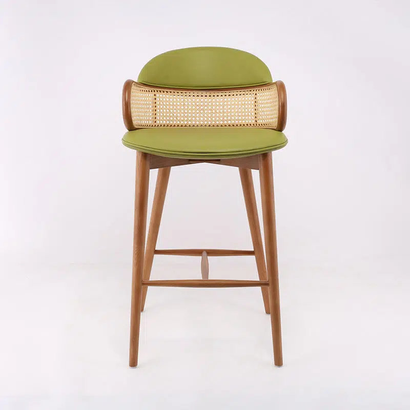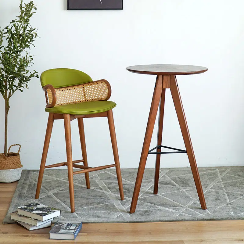 Contemporary Scandinavian Curved Half Round Curved Leather Ash Wood Rattan Bar Stool Backrest For Dining Room