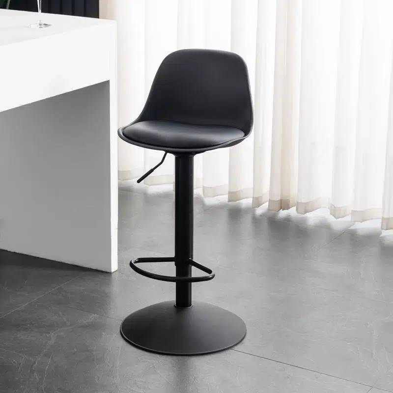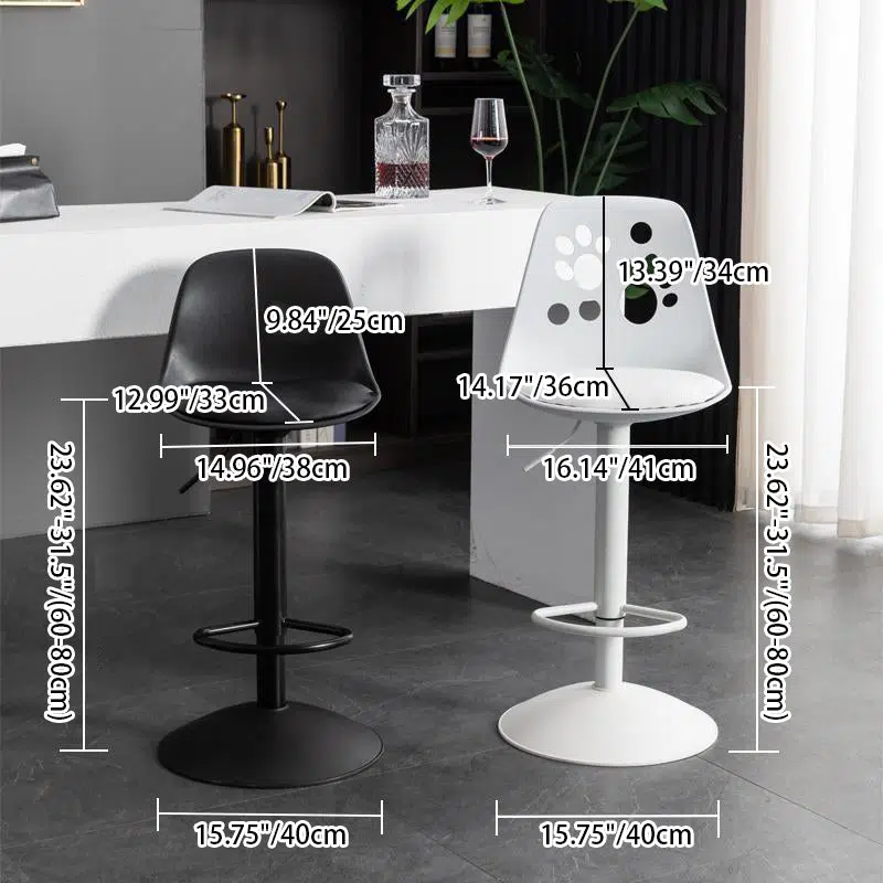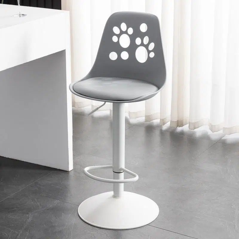 Contemporary Scandinavian Curved PU Leather Plastic Height Adjustable Swivel Bar Stool Cat Paw Back Footrest For Dining Room