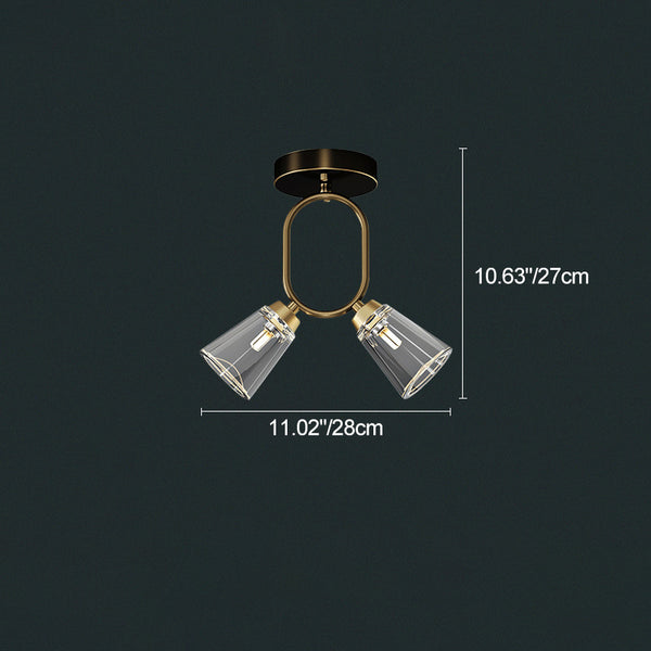 Contemporary Scandinavian Dome Copper Glass Lampshade Iron 2 – Light Semi-Flush Mount Ceiling Light For Living Room