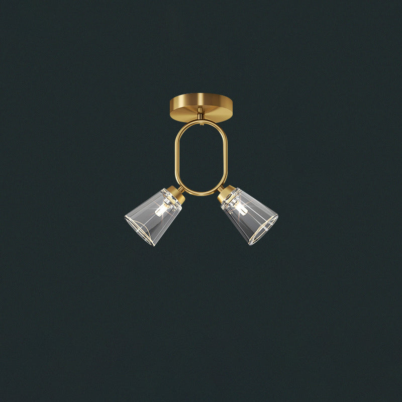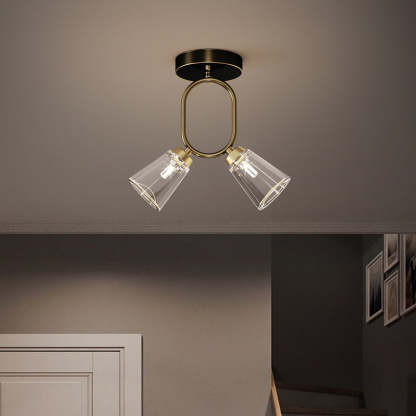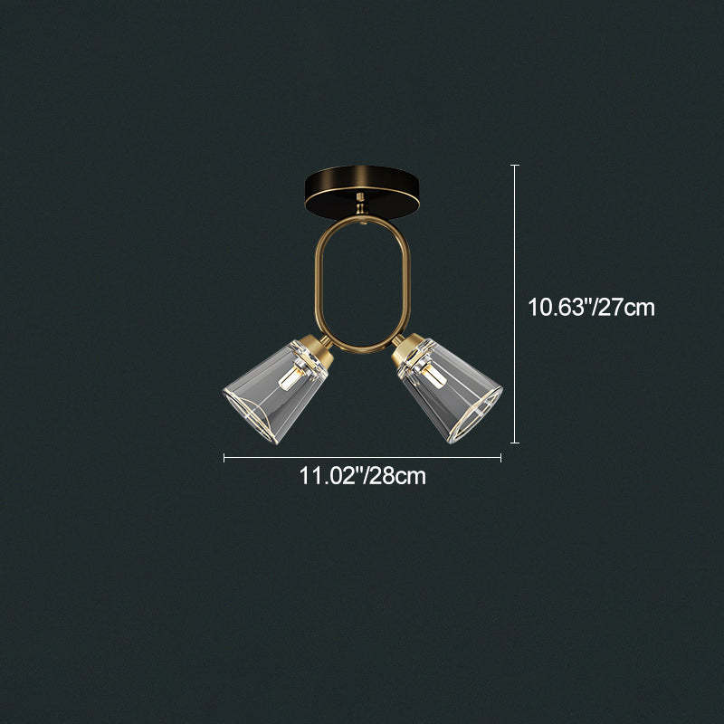 Contemporary Scandinavian Dome Copper Glass Lampshade Iron 2 - Light Semi-Flush Mount Ceiling Light For Living Room