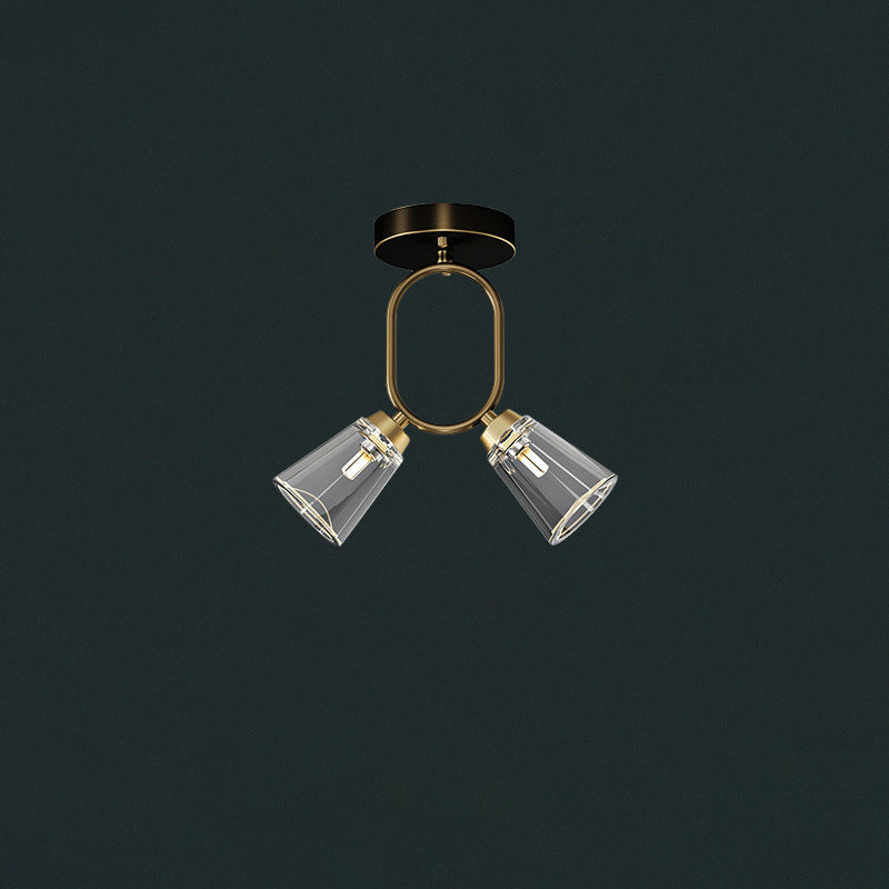 Contemporary Scandinavian Dome Copper Glass Lampshade Iron 2 – Light Semi-Flush Mount Ceiling Light For Living Room