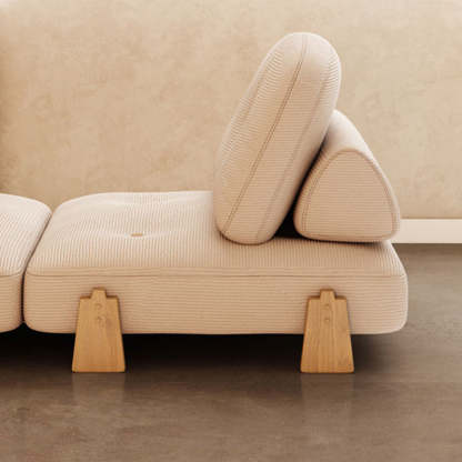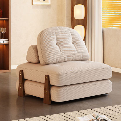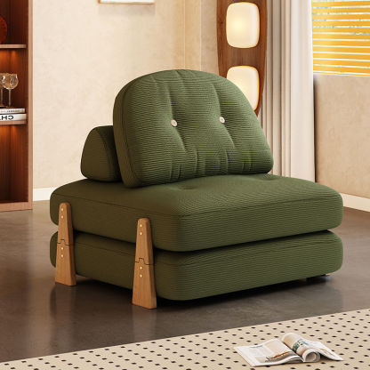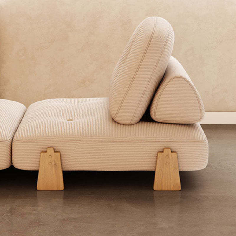 Contemporary Scandinavian Foldable Square Rectangle Wood Corduroy Sofa For Living Room