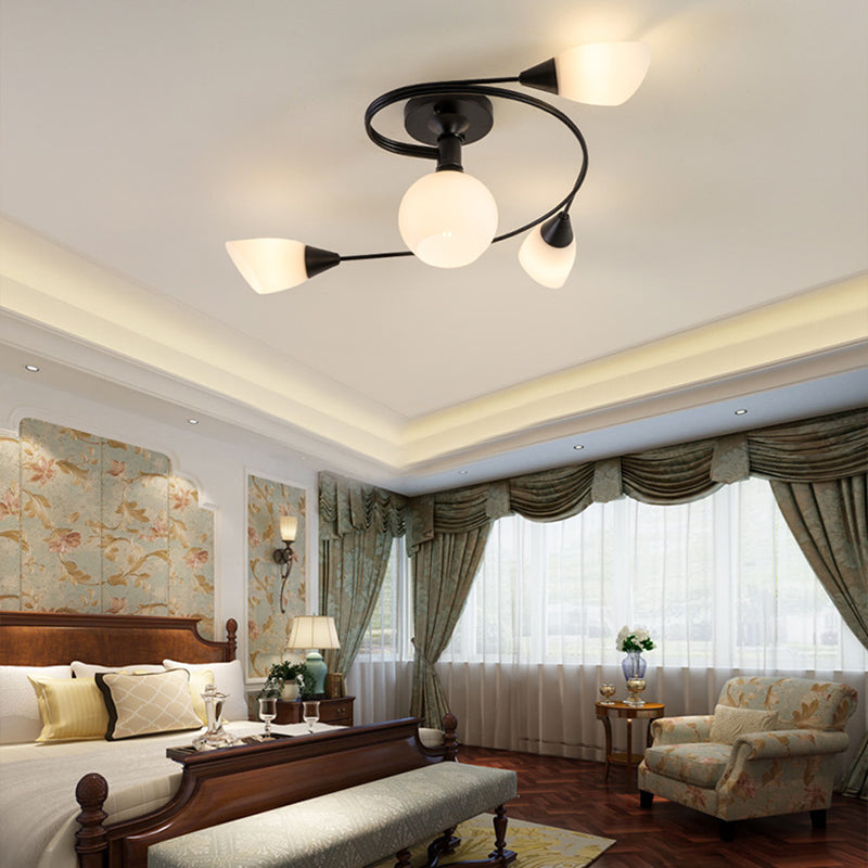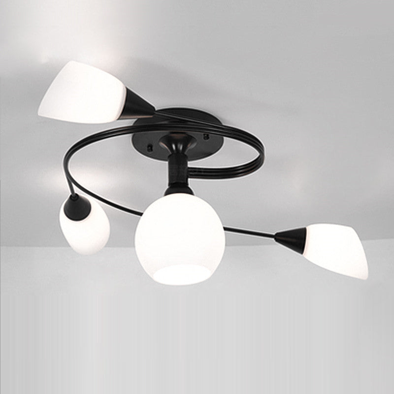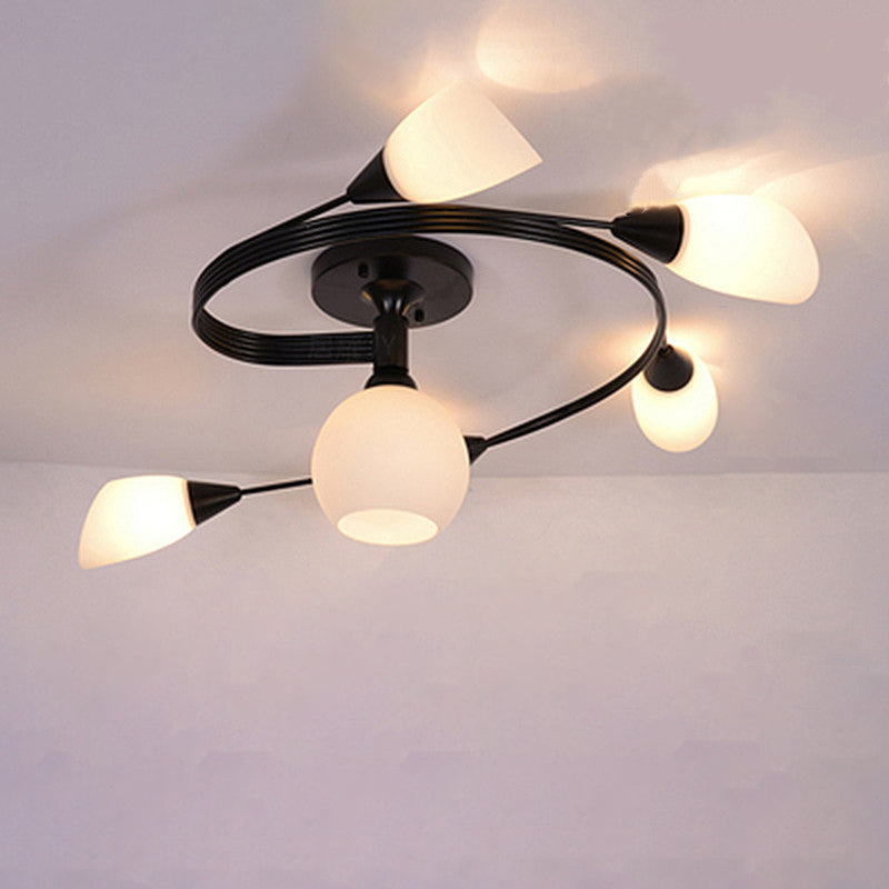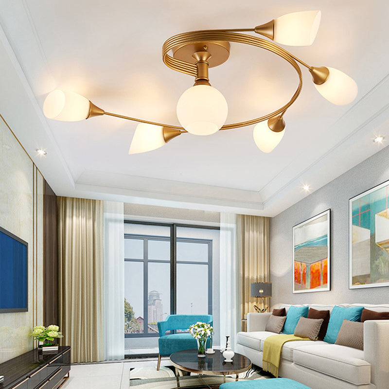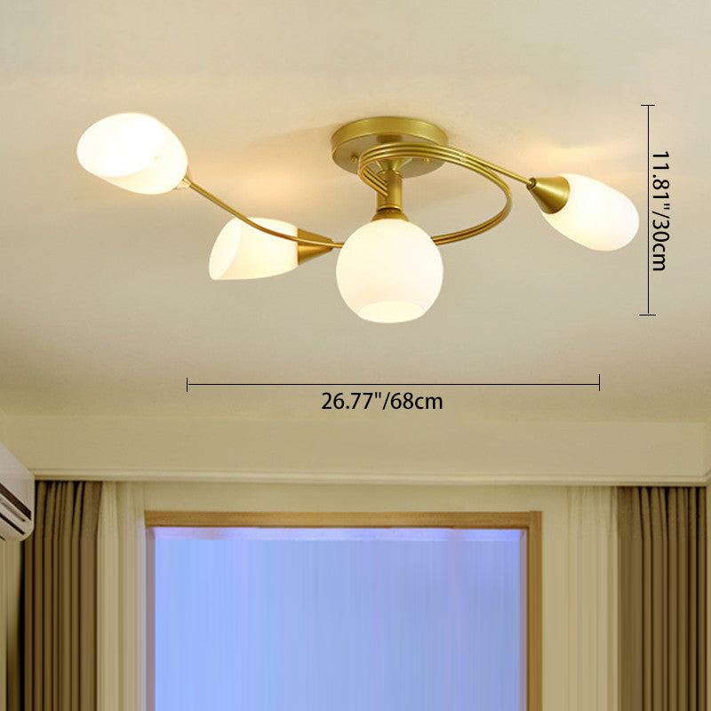 Contemporary Scandinavian Glass Iron Circular Floral Bud 4/6 Lights Semi-Flush Mount Ceiling Light For Bedroom And Living Room