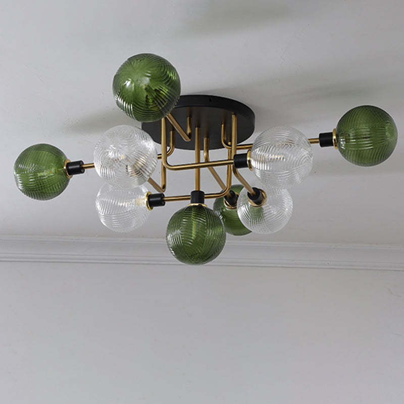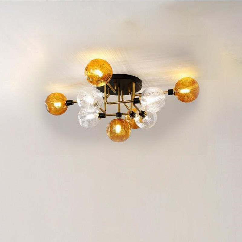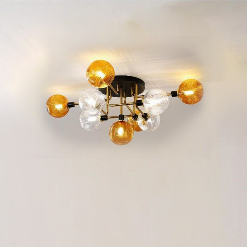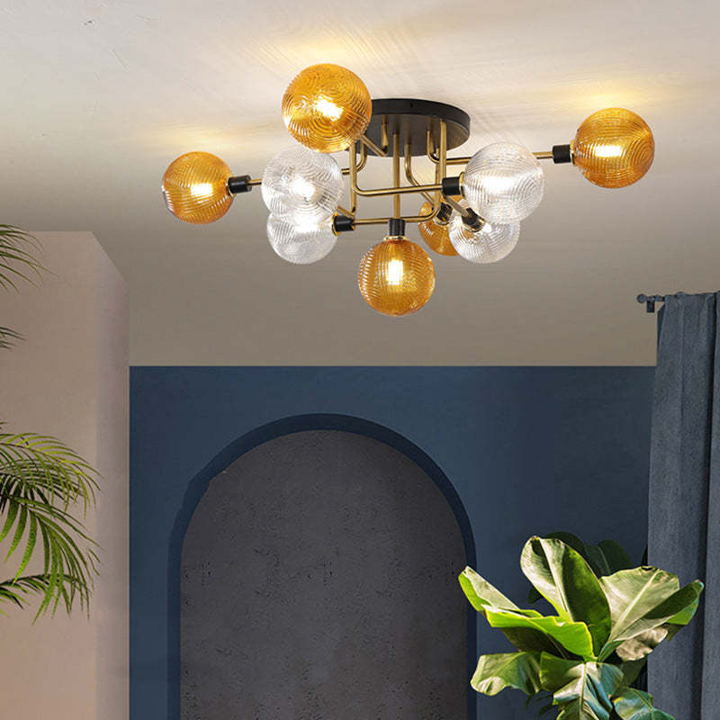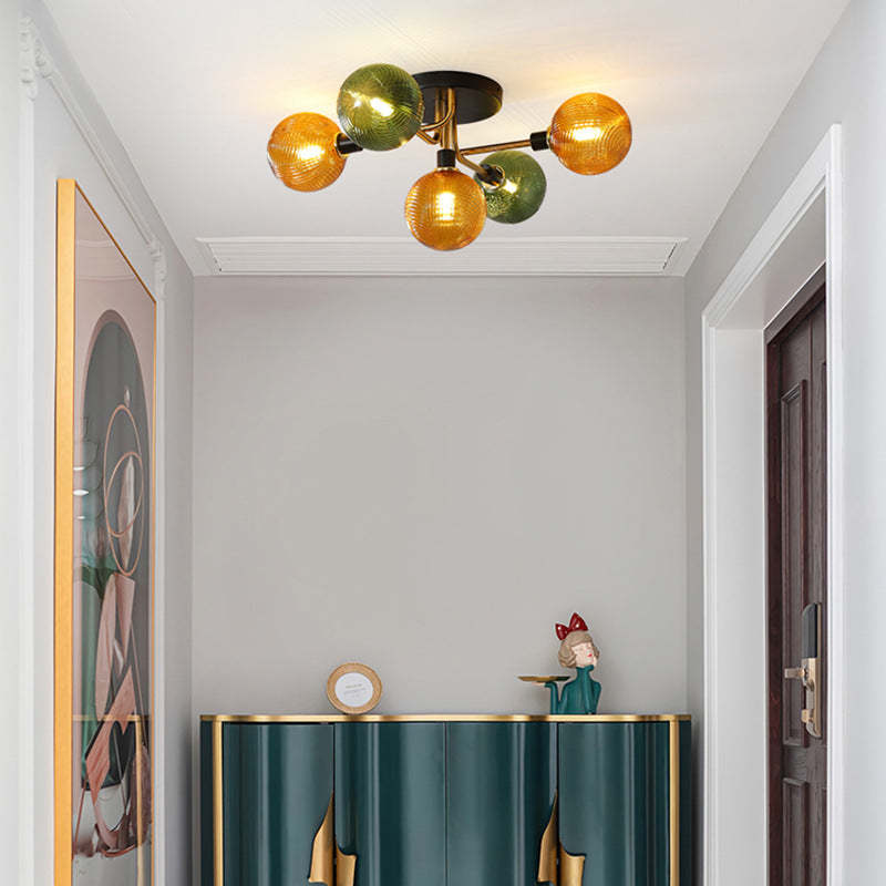 Contemporary Scandinavian Iron Glass Spherical 5/9-Light Semi-Flush Mount Ceiling Light For Living Room, Bedroom Or Entrance Hallway