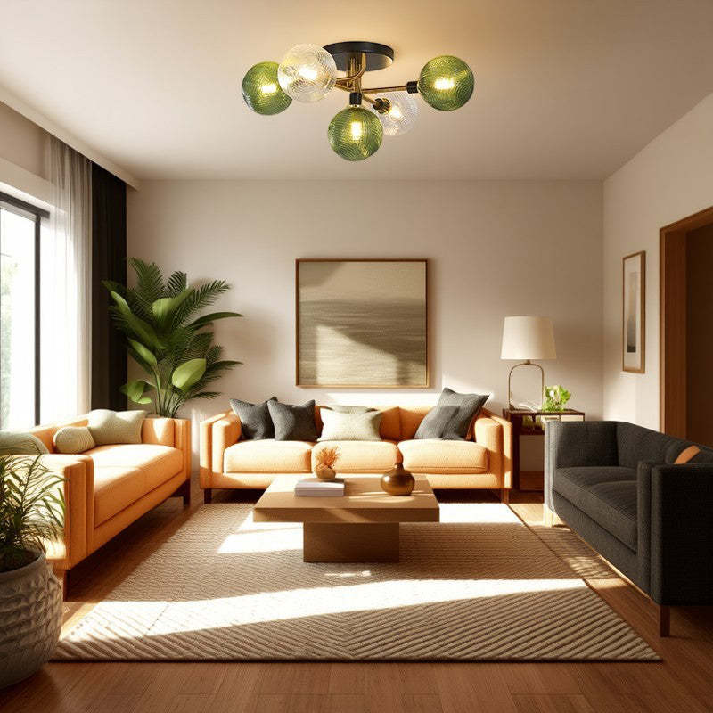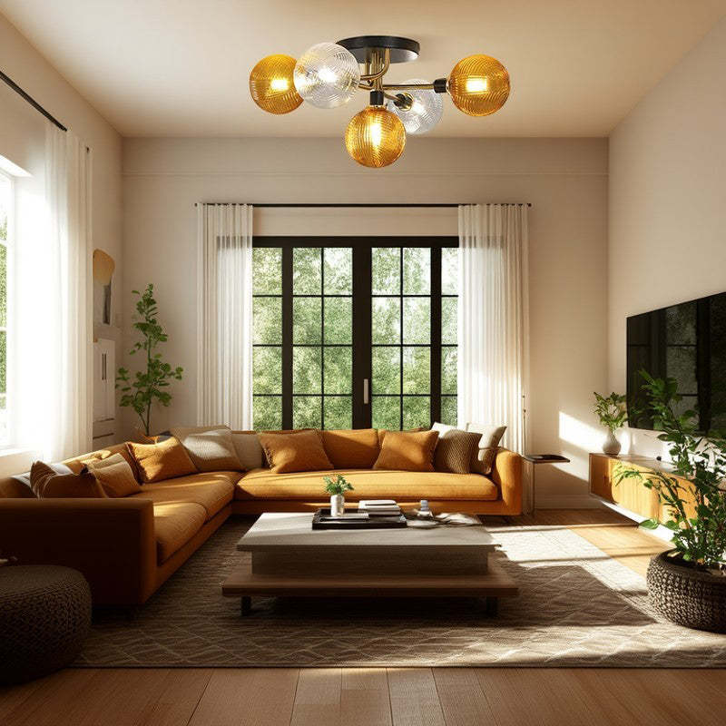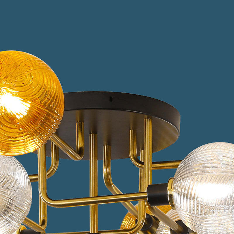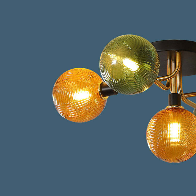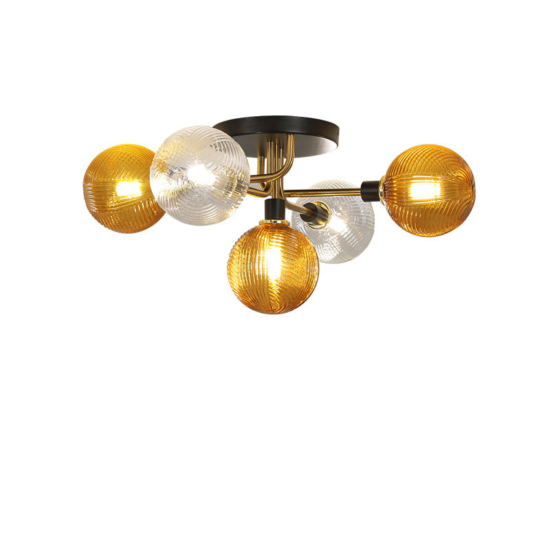 Contemporary Scandinavian Iron Glass Spherical 5/9-Light Semi-Flush Mount Ceiling Light For Living Room, Bedroom Or Entrance Hallway