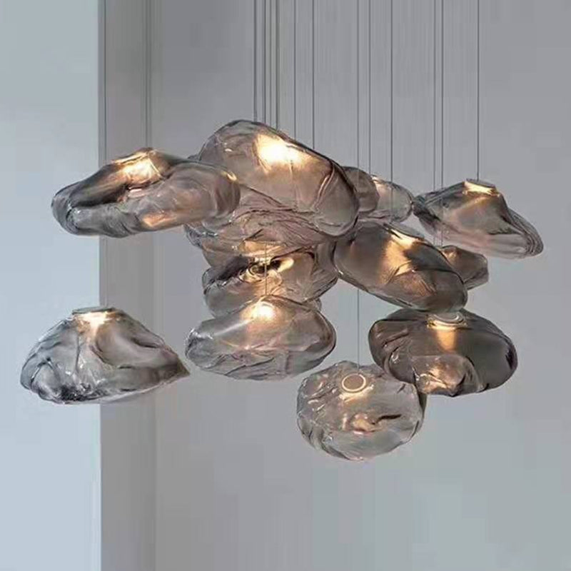 Contemporary Scandinavian Irregular Half Round Glass Hardware 1-Light Pendant Light For Living Room