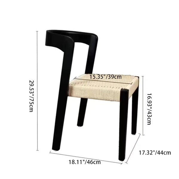 Contemporary Scandinavian Kraft Paper Rope Rubber Wood Dining Chair Backrest Armless For Dining Room