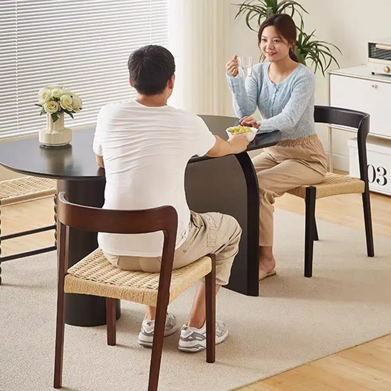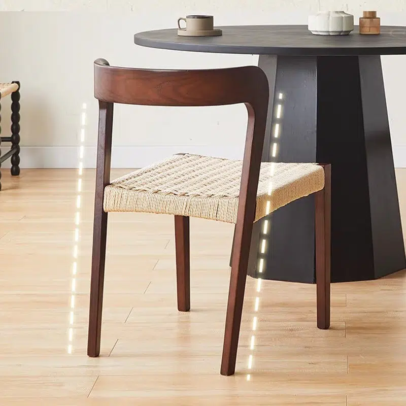 Contemporary Scandinavian Kraft Paper Rope Rubber Wood Dining Chair Backrest Armless For Dining Room