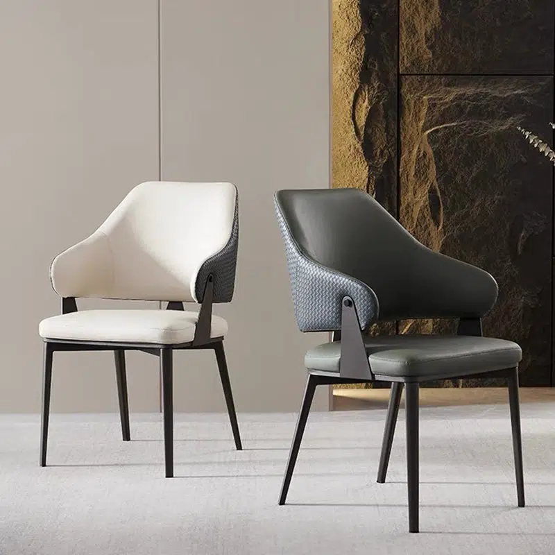 Contemporary Scandinavian Leather Carbon Steel Sponge Square Lozenge Dining Chair Backrest Armrest For Dining Room