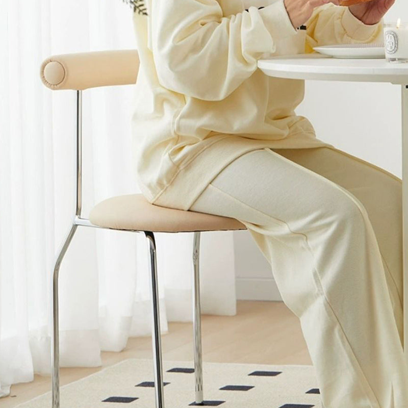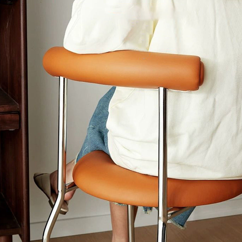 Contemporary Scandinavian Leather Metal Sponge Round Arc Dining Chair Backrest For Dining Room