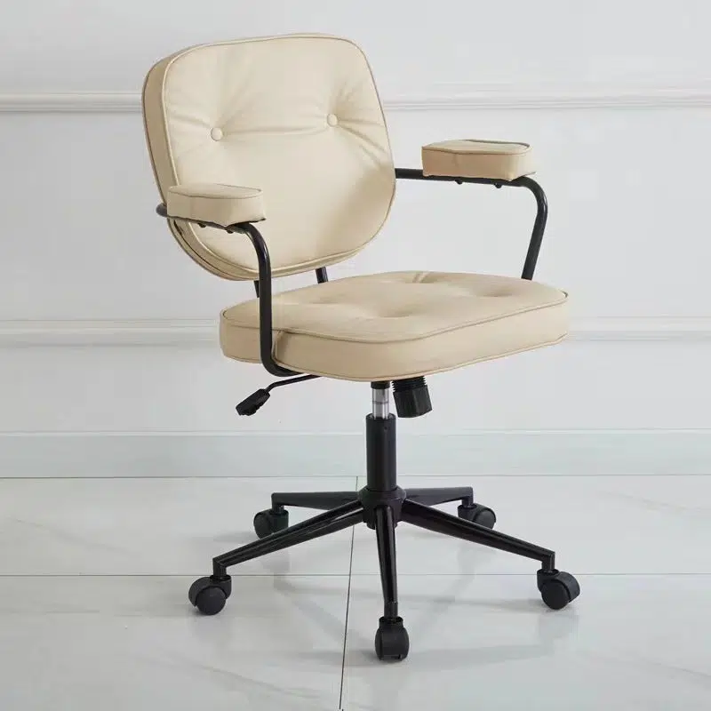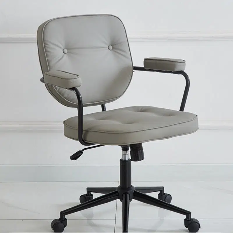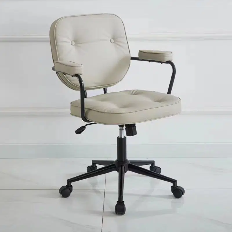 Contemporary Scandinavian Leather Metal Square Round Buckle Desk Chair Backrest Armrest For Home Office