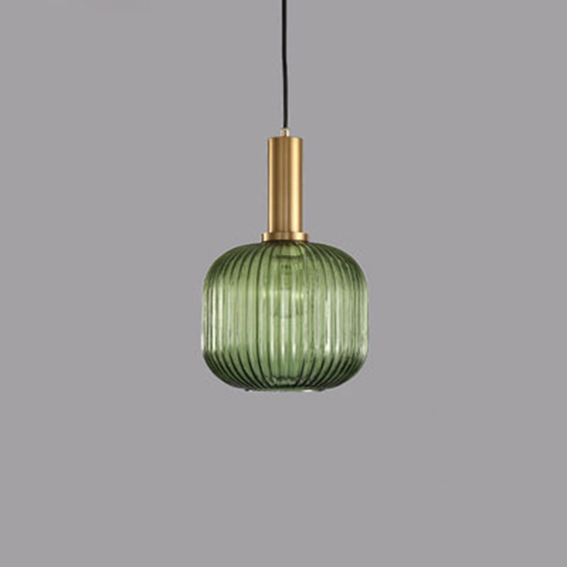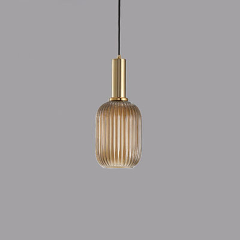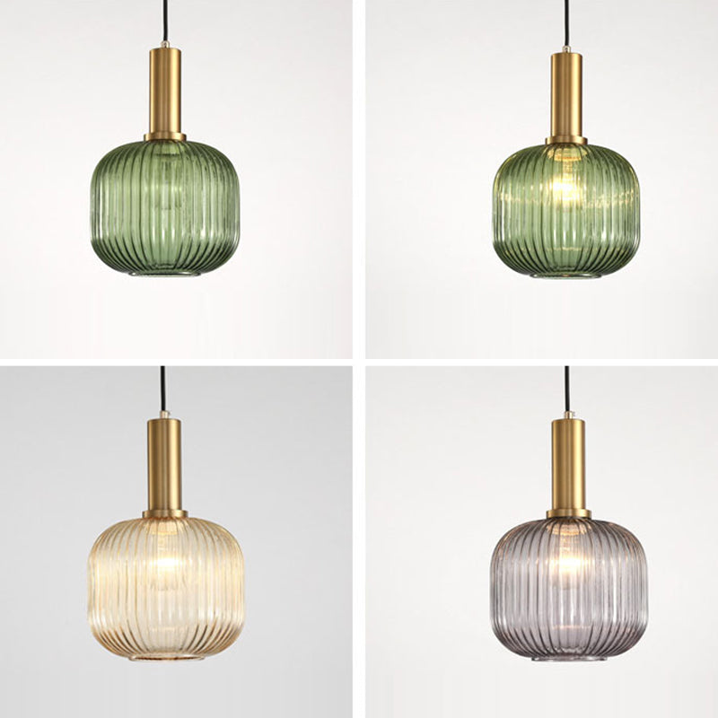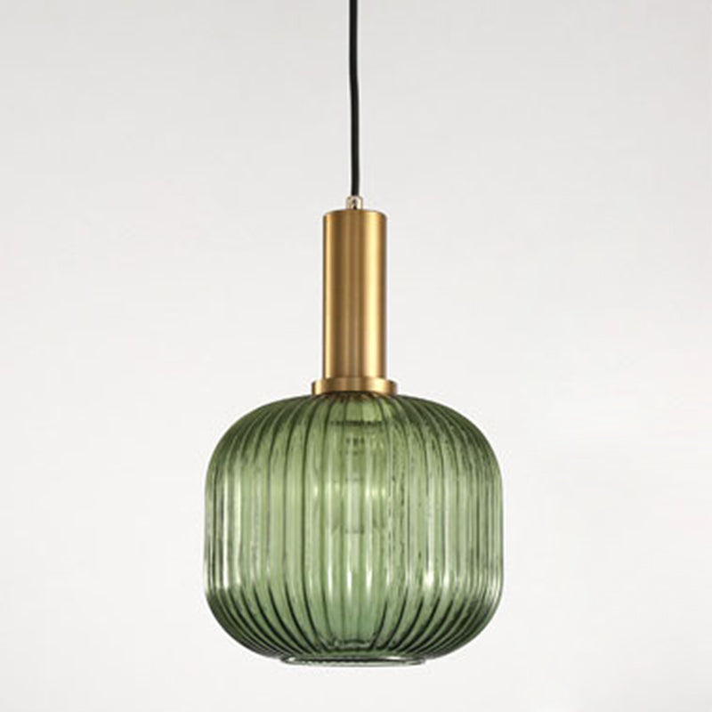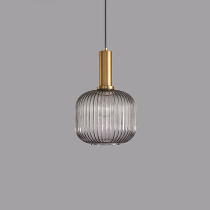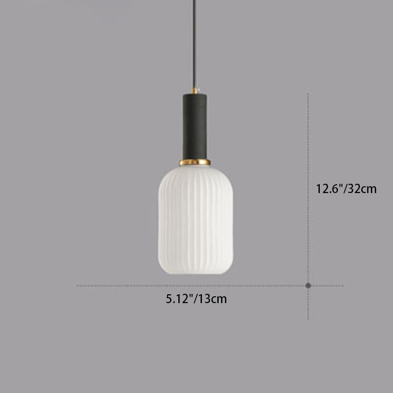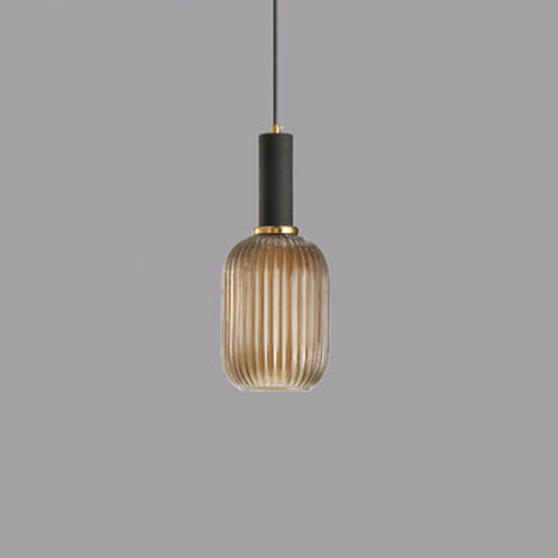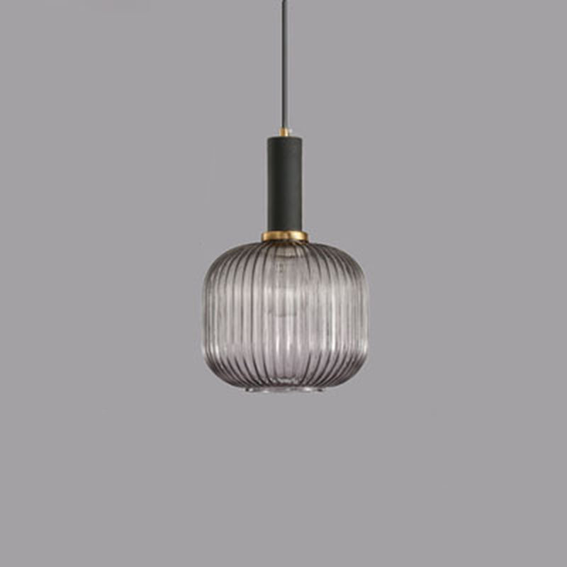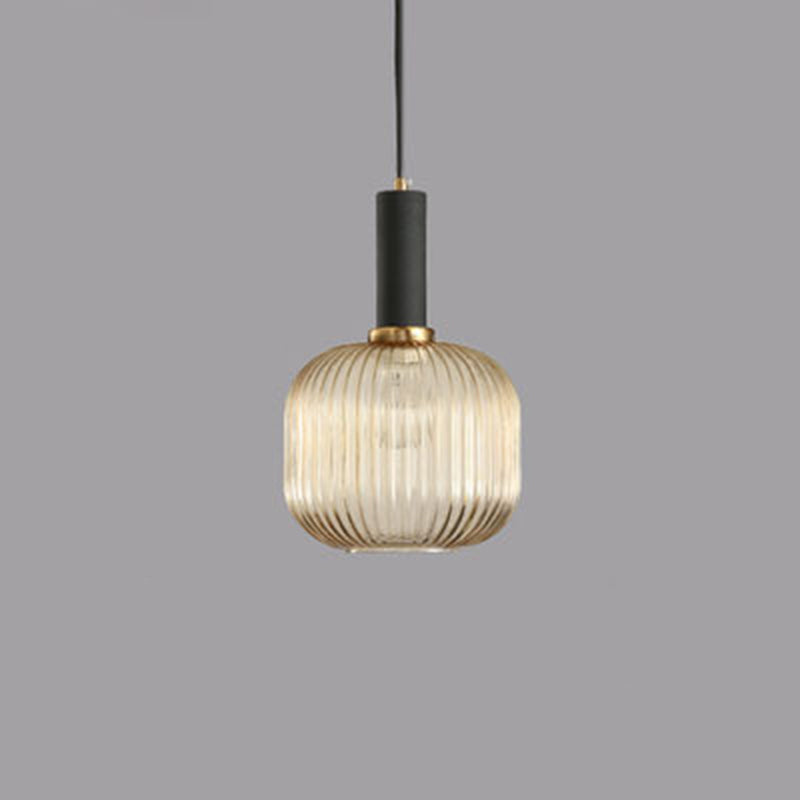 Contemporary Scandinavian Metal Glass Cylinder Striped Lantern 1-Light Pendant Light For Dining Room