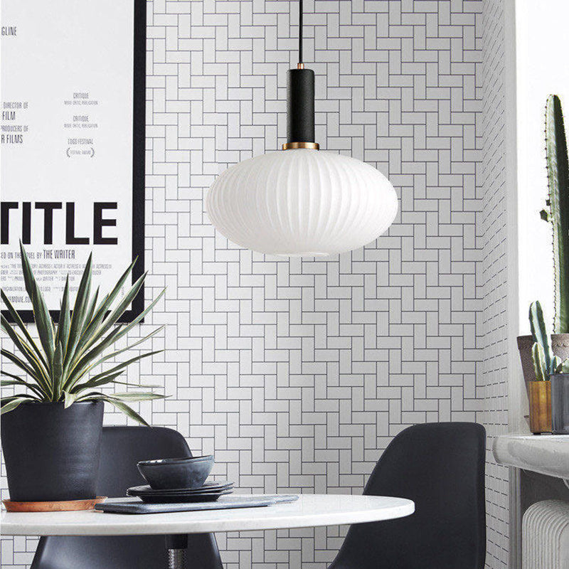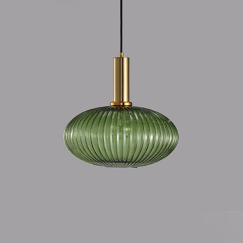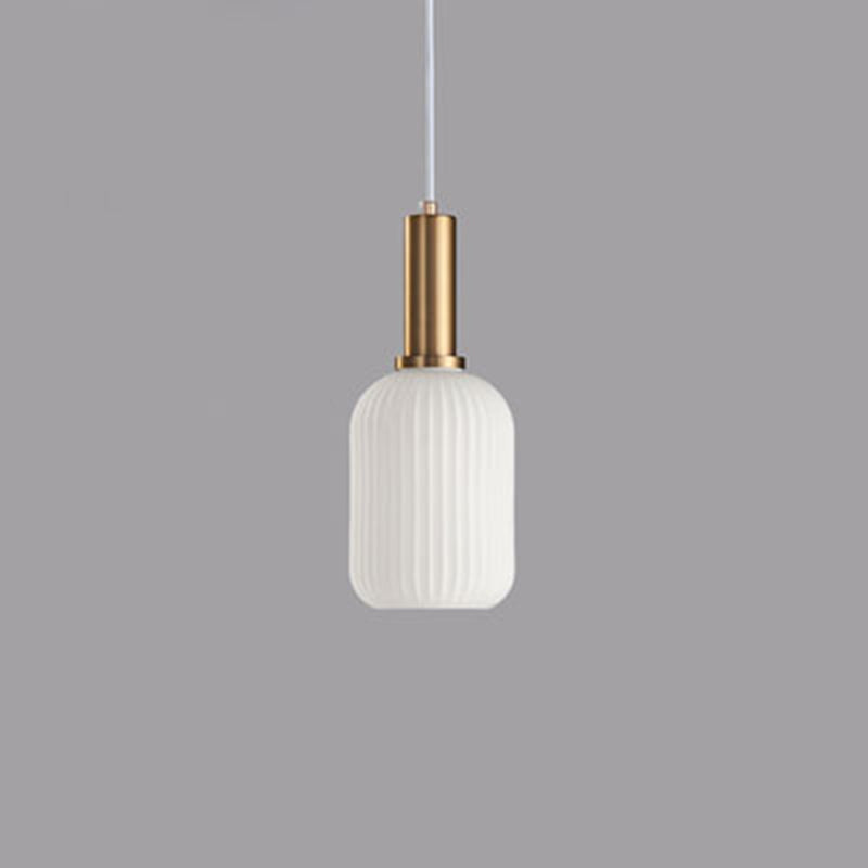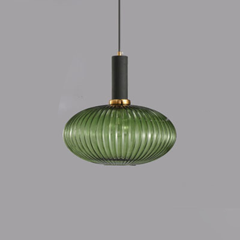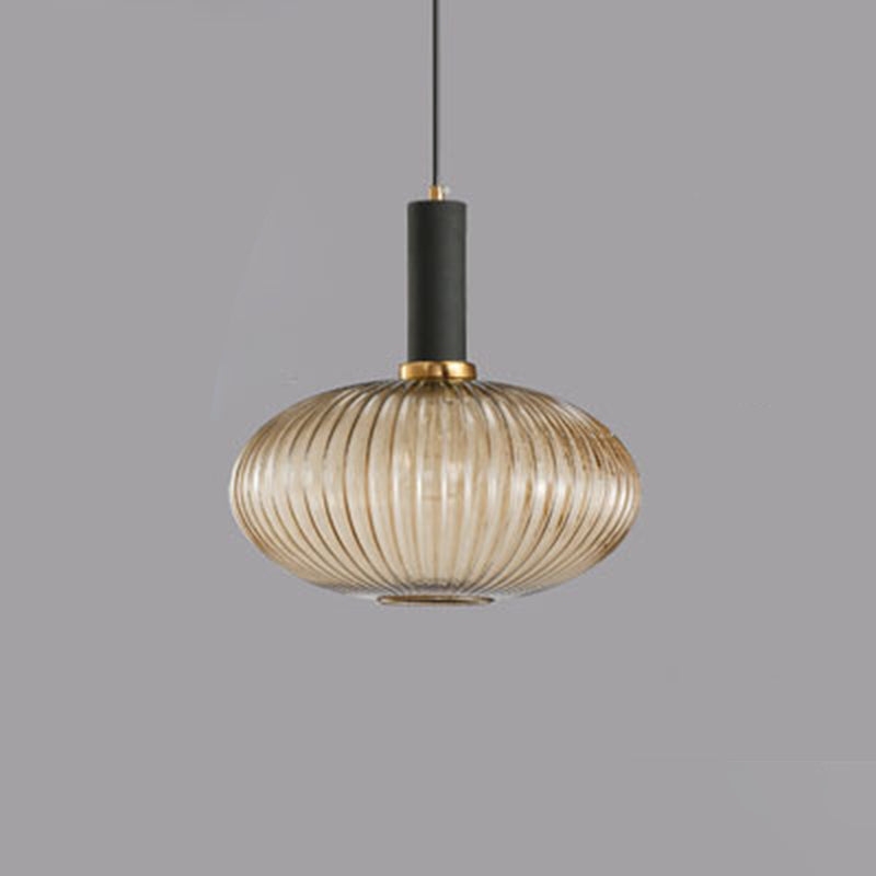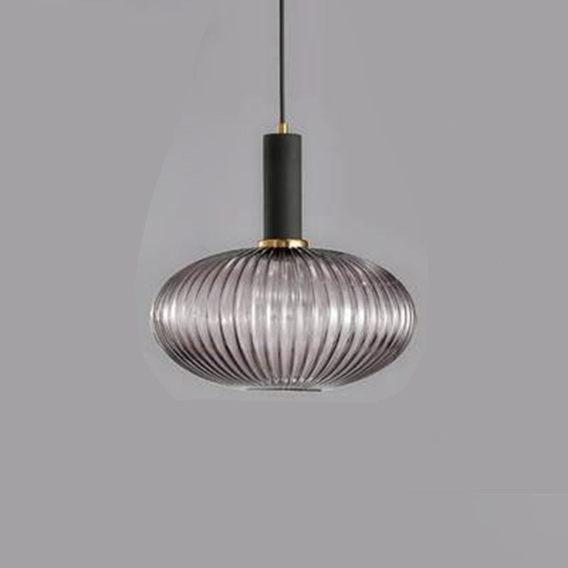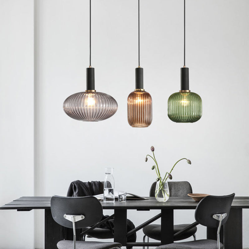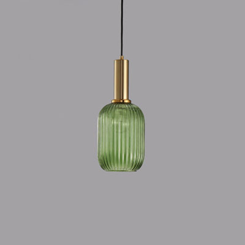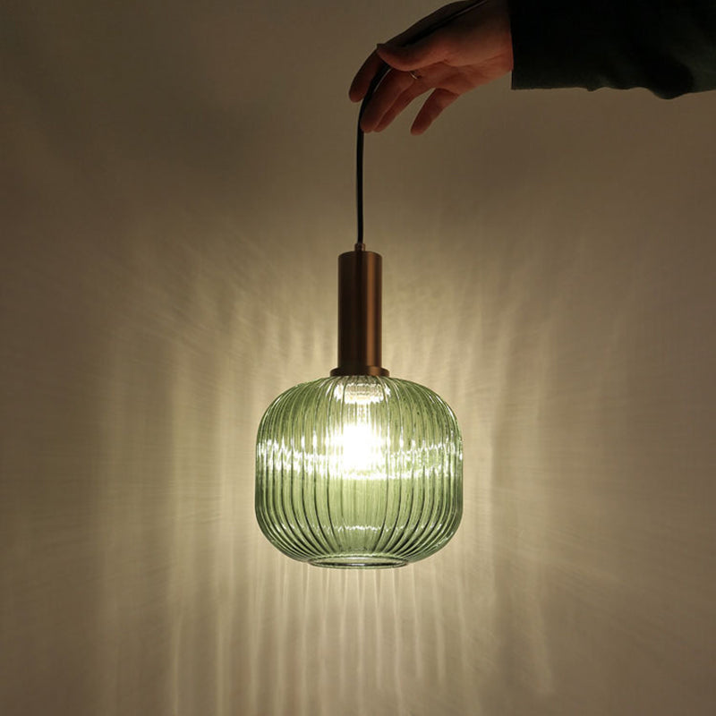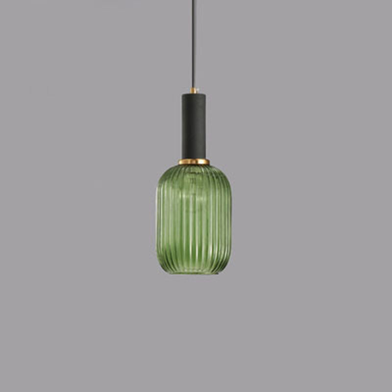 Contemporary Scandinavian Metal Glass Cylinder Striped Lantern 1-Light Pendant Light For Dining Room