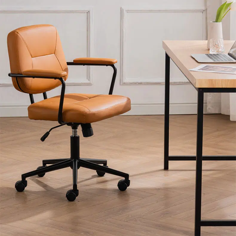 Contemporary Scandinavian Microfiber Leather Fabric Steel Sponge Square Desk Chair Backrest Armrest Adjustable For Home Office