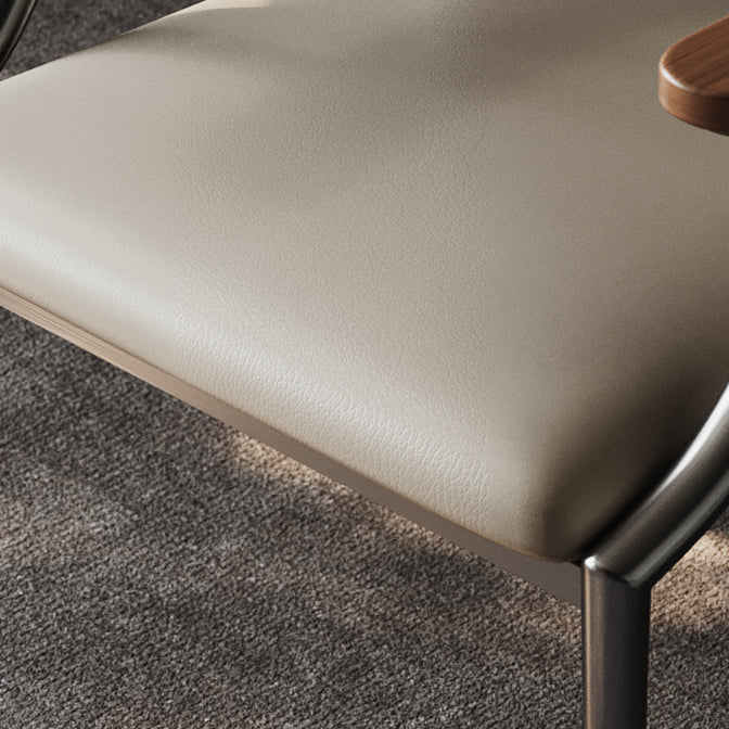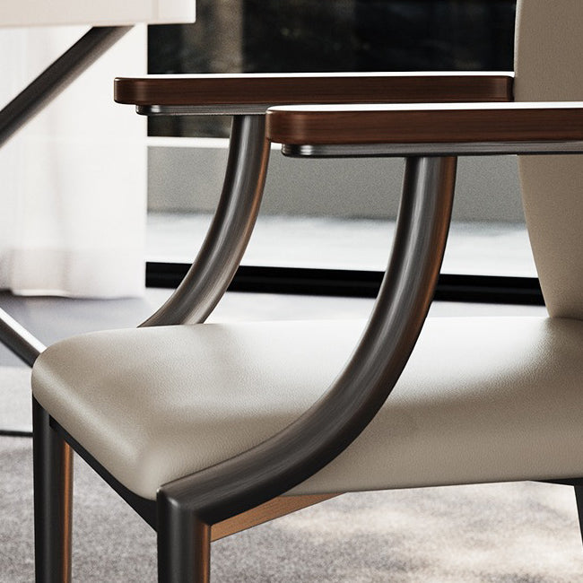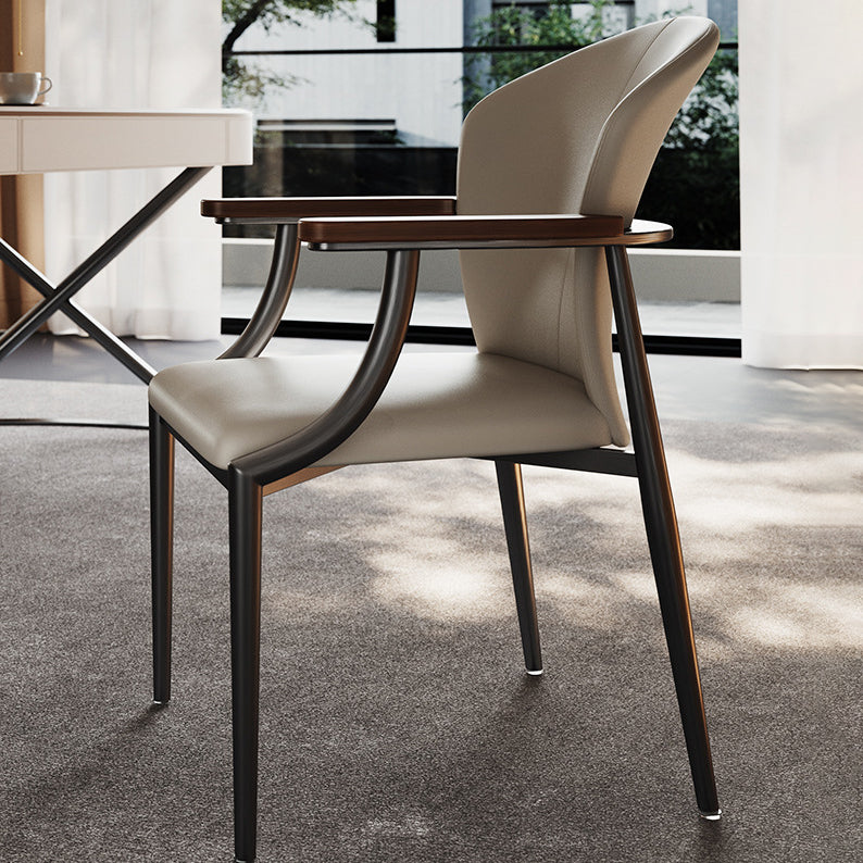 This Scandinavian-inspired dining chair features a soft beige microfiber leather seat. curved square silhouette. and a high backrest for enhanced comfort. Crafted from walnut wood and stainless steel. it blends elegance and durability??perfect for living rooms. tea tables. or modern dining spaces.