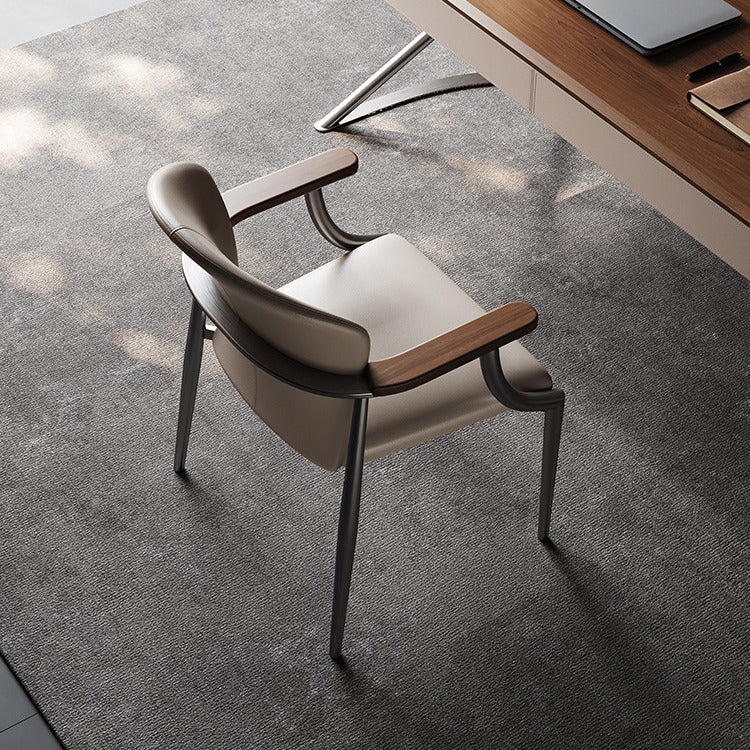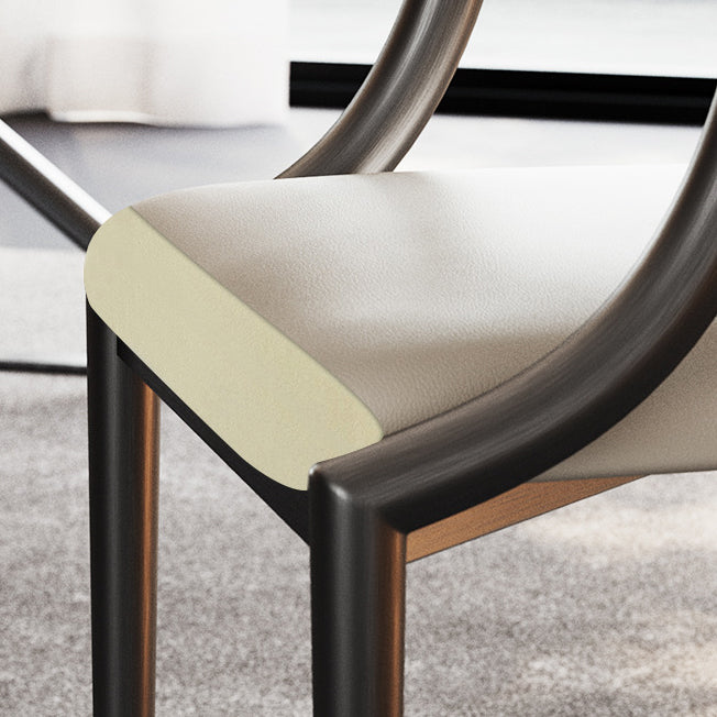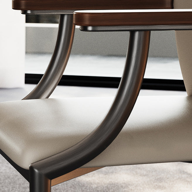 Contemporary Scandinavian Microfiber Leather Walnut Stainless Steel Curved Square Dining Chair With Backrest For Living Room & Dining Room
