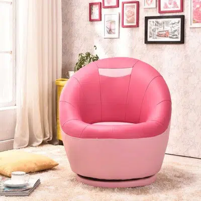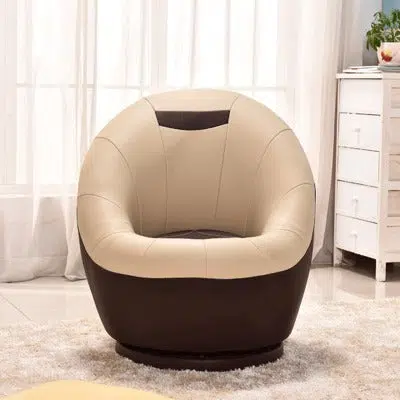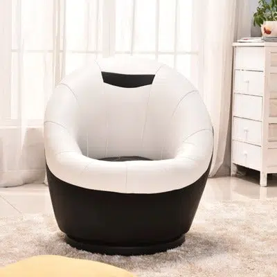 Contemporary Scandinavian Oval Leather Upholstered Swivel Accent Chair Backrest For Living Room