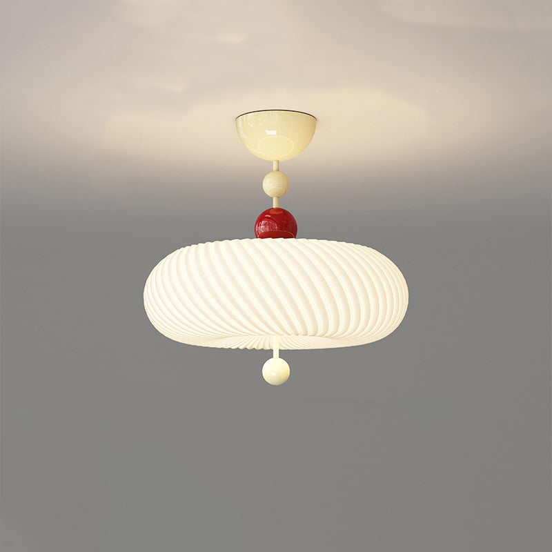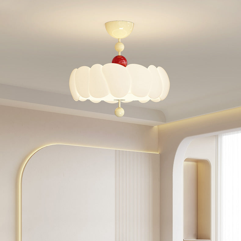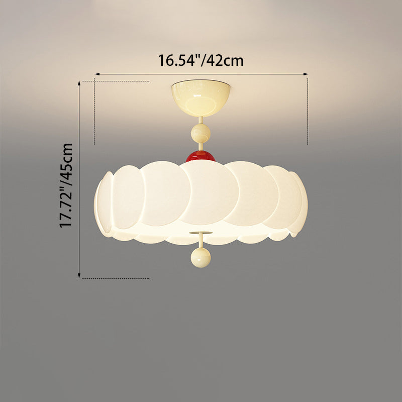 Contemporary Scandinavian PE Iron Creamy Rippled Pumpkin Round LED Semi-Flush Mount Ceiling Light For Bedroom & Living Room