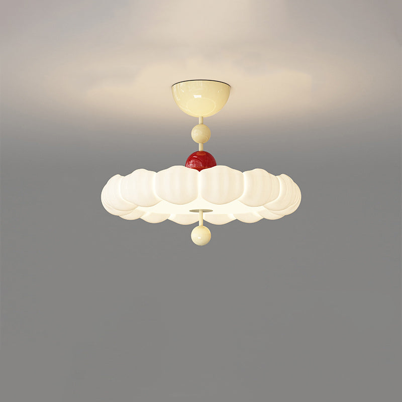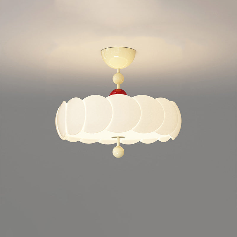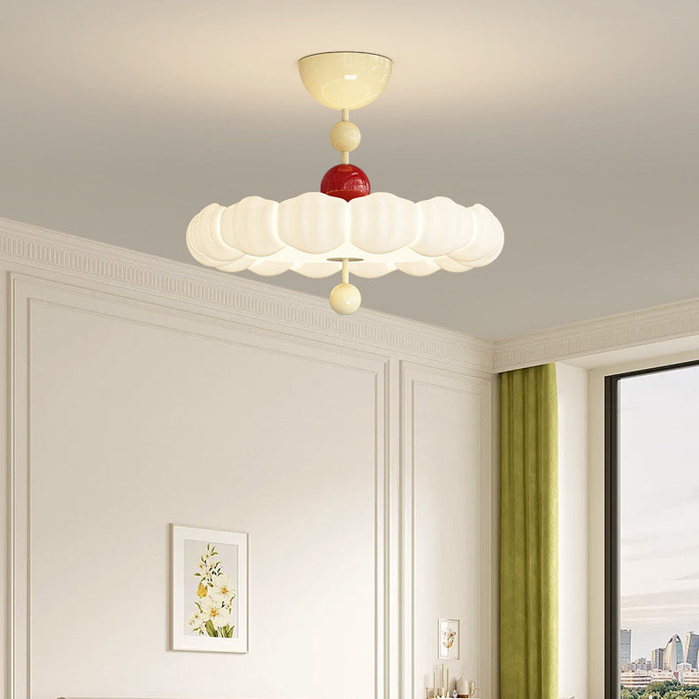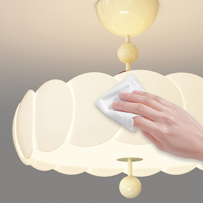 Crafted from PE and iron. this contemporary Scandinavian ceiling light features a soft pumpkin-inspired round silhouette with creamy rippled edges. With LED full-spectrum lighting. it ensures high luminous efficiency. anti-blue light. and high color rendering??ideal for bedrooms or living rooms with a warm. retro-modern touch.