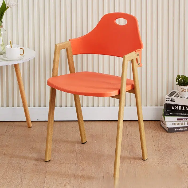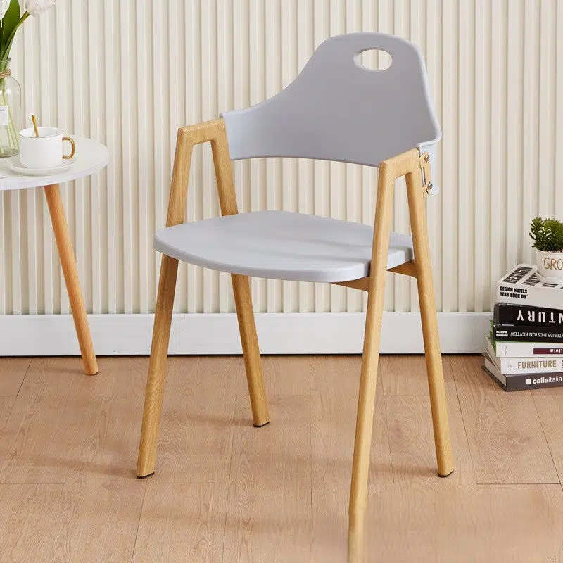 Contemporary Scandinavian Plastic Solid Wood Square Oval Dining Chair Backrest Armrest For Dining Room