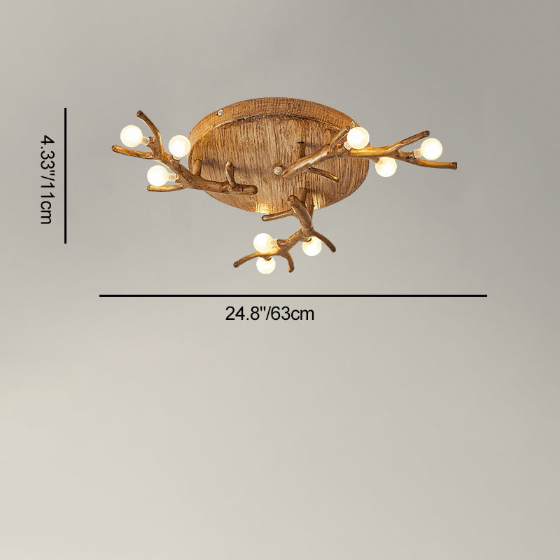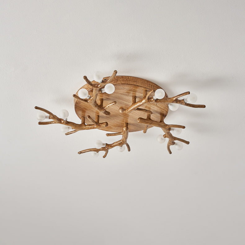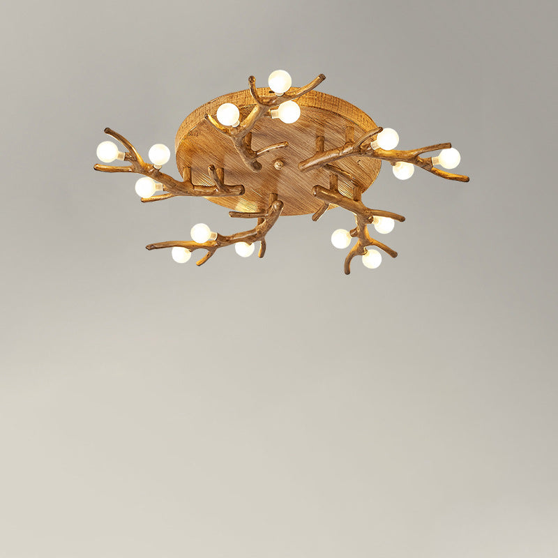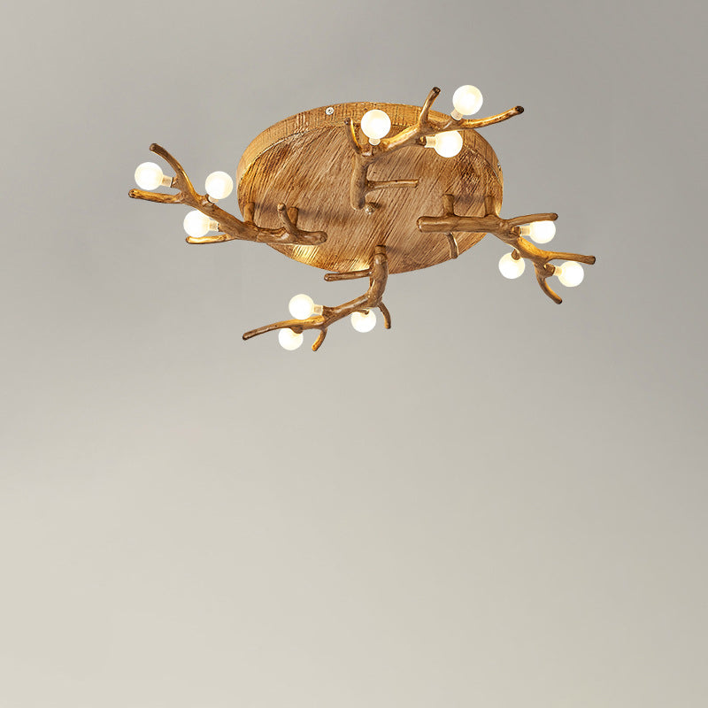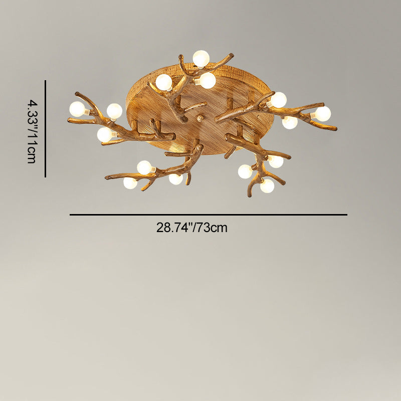 Contemporary Scandinavian Polymer Tree Branch Texture Glass Ball Shade 9/12/15-Light Semi-Flush Mount Ceiling Light For Living Room