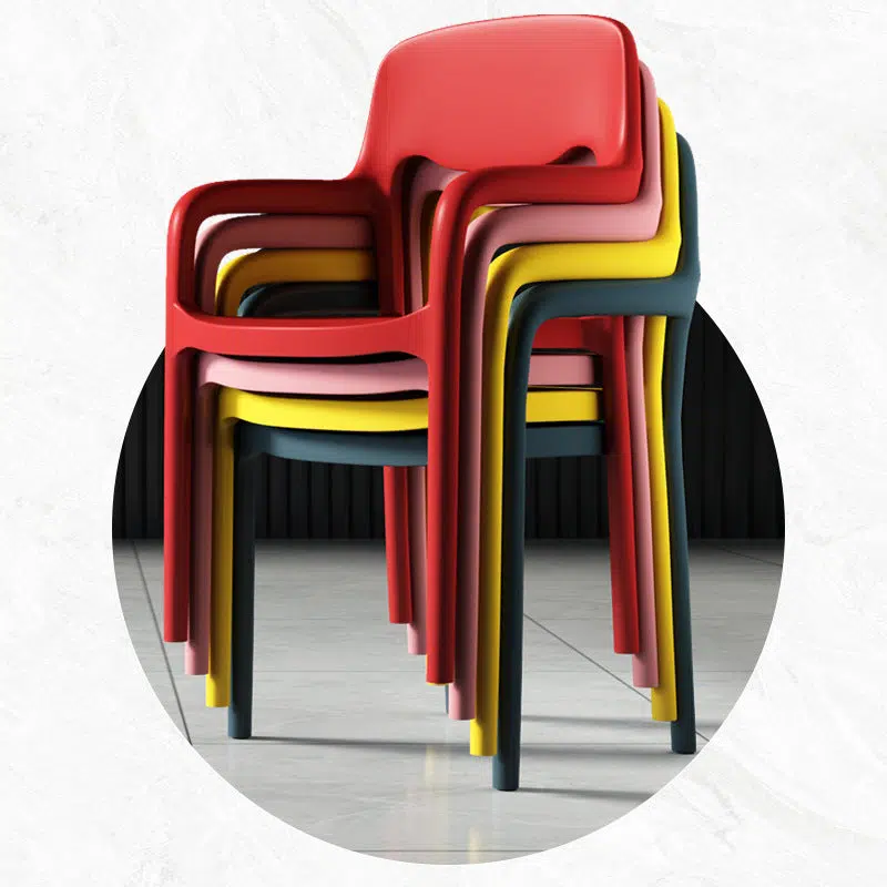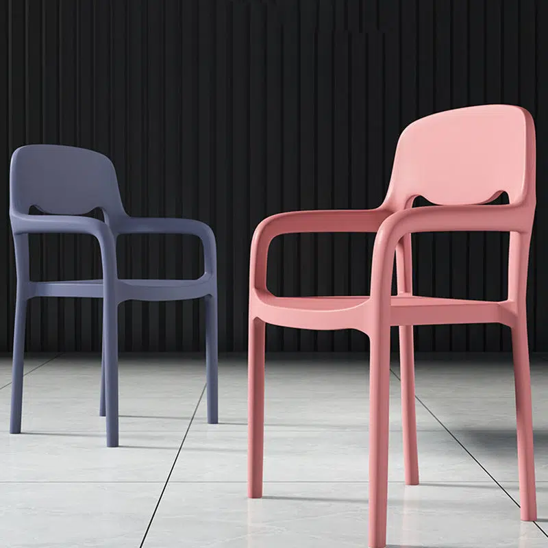 Contemporary Scandinavian PP Square Open-Back Dining Chair Backrest Armrest Stackable For Dining Room