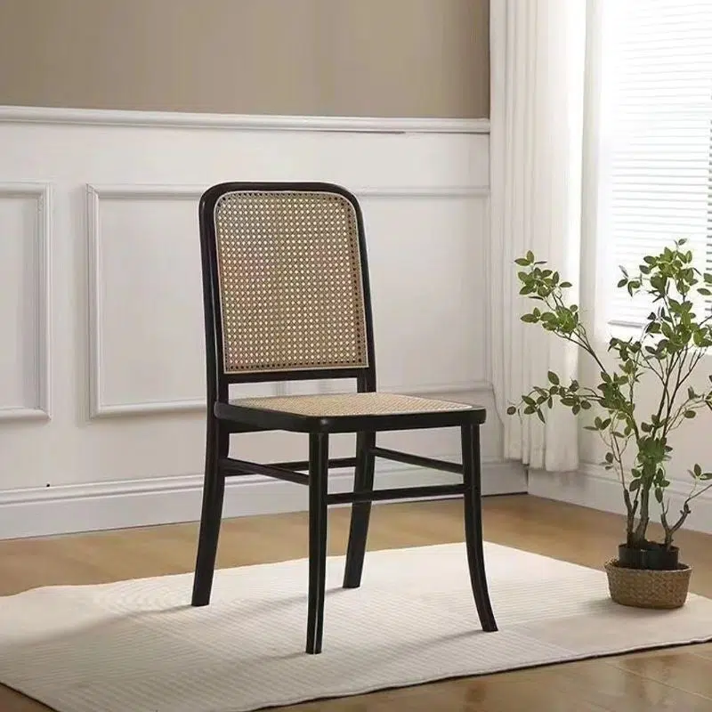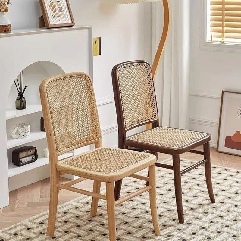 Contemporary Scandinavian Rattan Solid Wood Rectangular Square Lattice Dining Chair Back For Dining Room