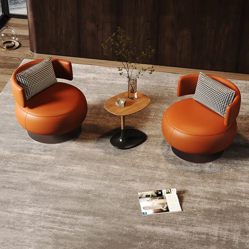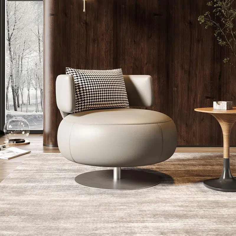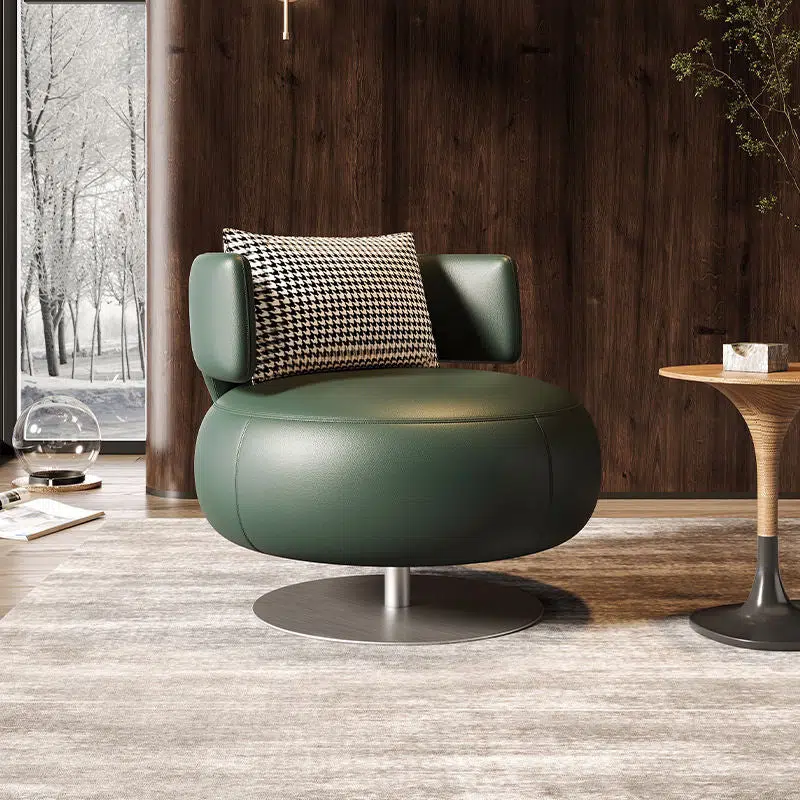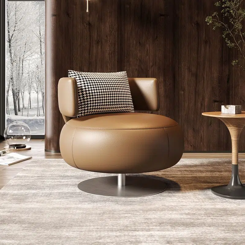 Contemporary Scandinavian Round Curved Leather Sponge Stainless Steel Accent Chair Backrest Rotatable For Living Room