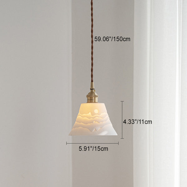 Contemporary Scandinavian Round Cylinder Cone Copper Ceramic 1-Light Pendant Light For Dining Room