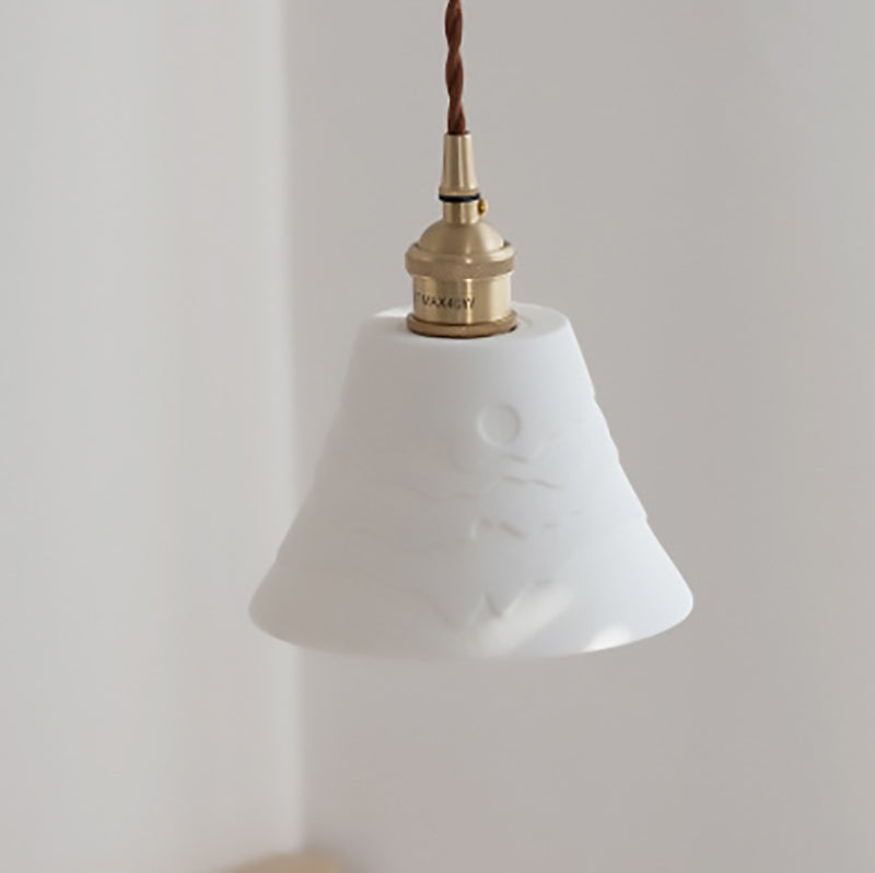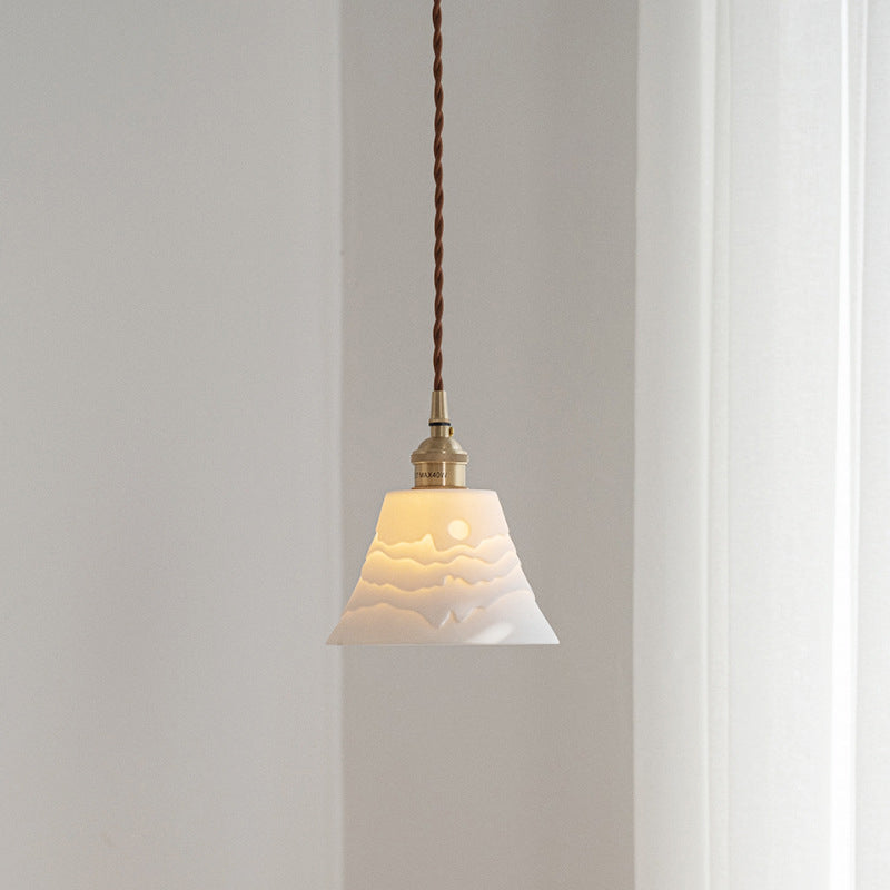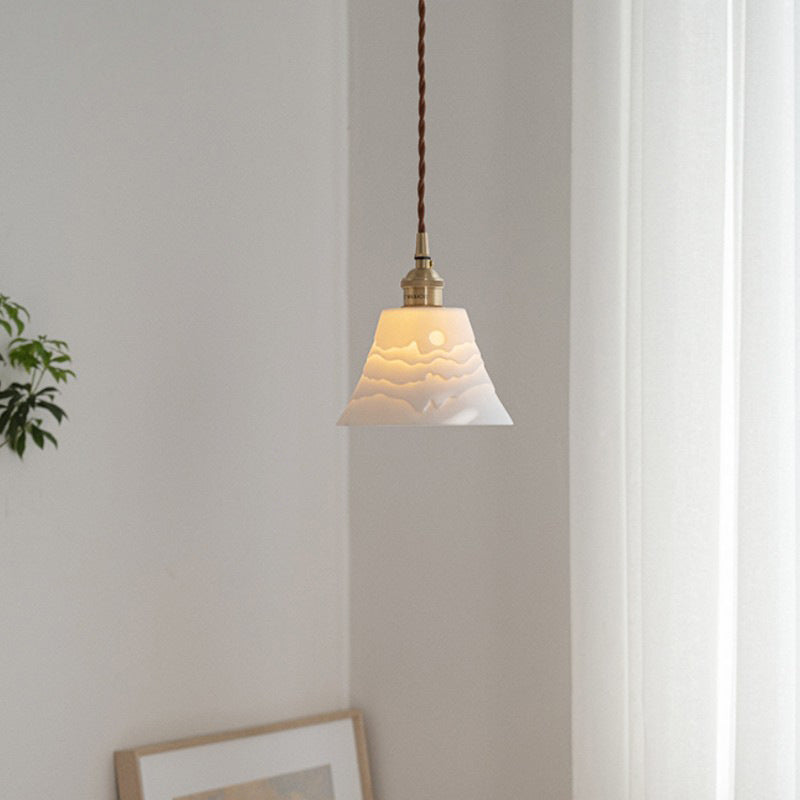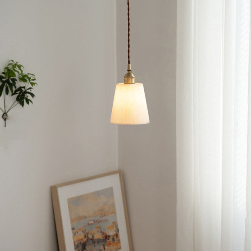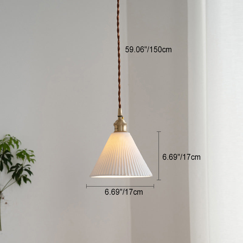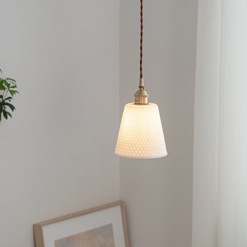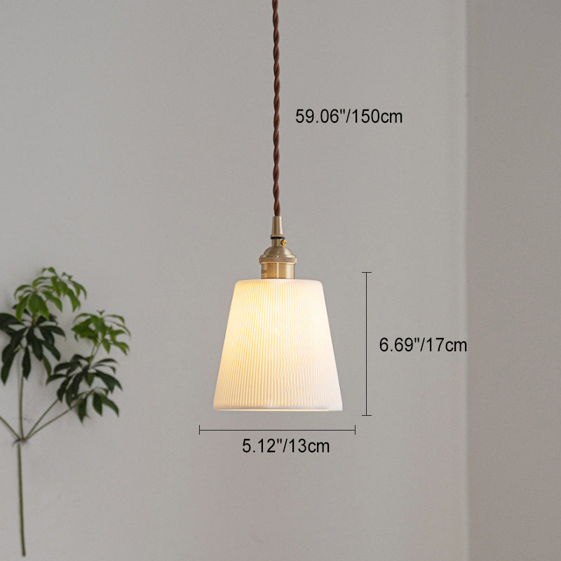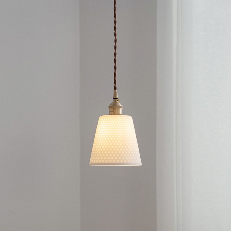 Contemporary Scandinavian Round Cylinder Cone Copper Ceramic 1-Light Pendant Light For Dining Room
