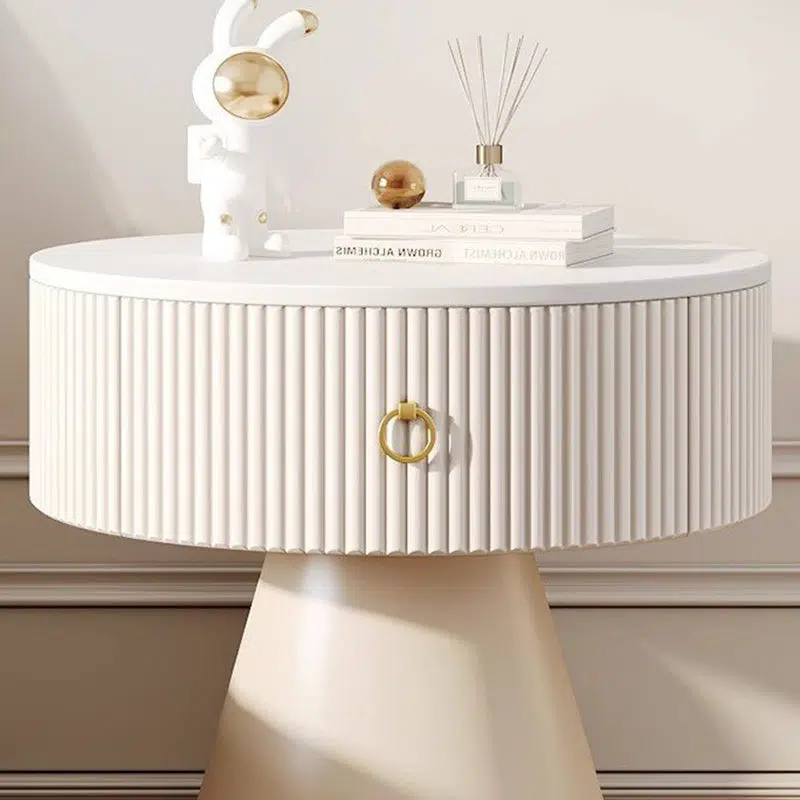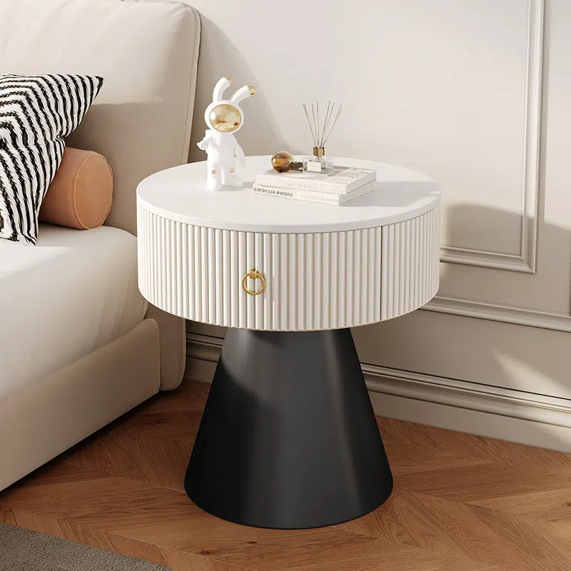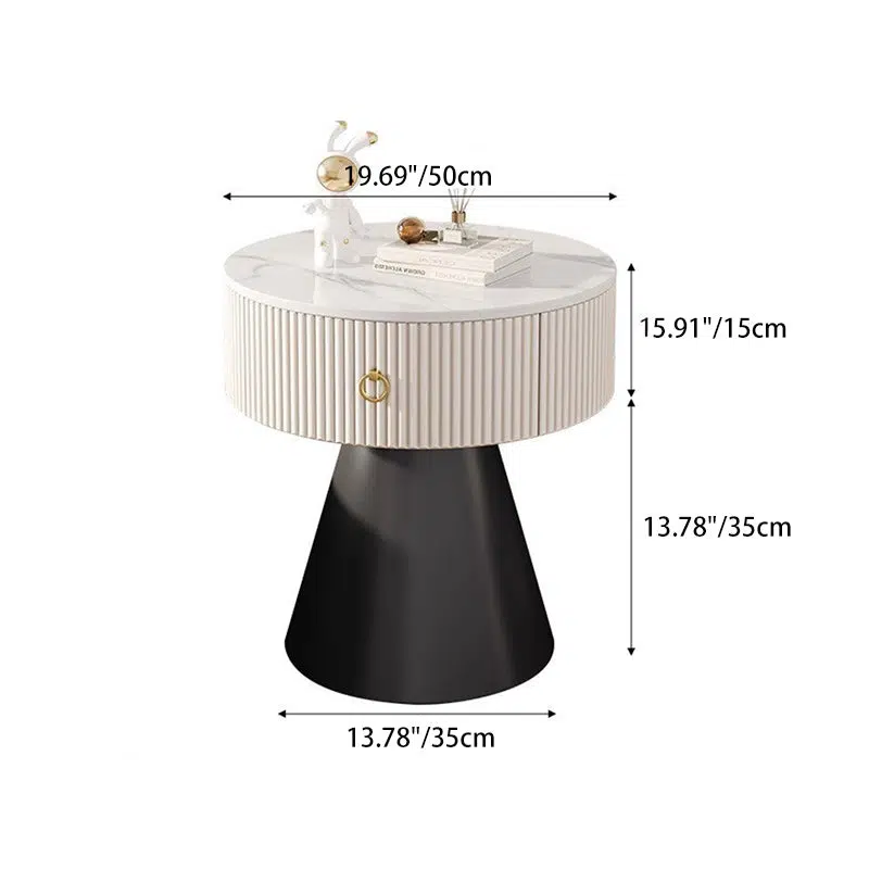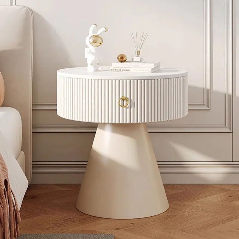 Contemporary Scandinavian Round Cylinder Cone PP Rock Slab Nightstand 1-Drawer For Bedroom