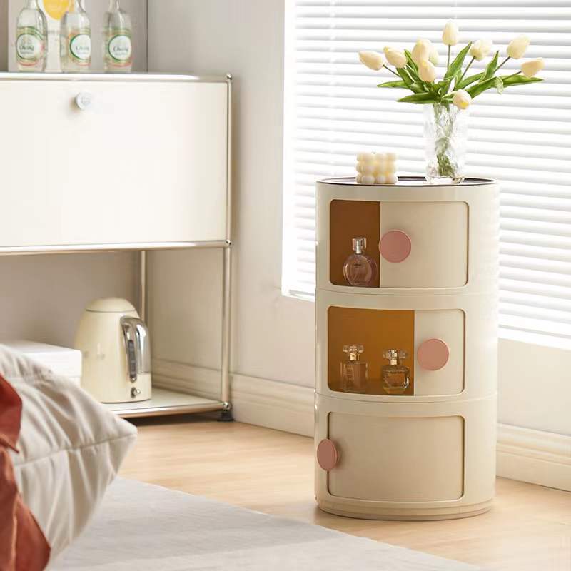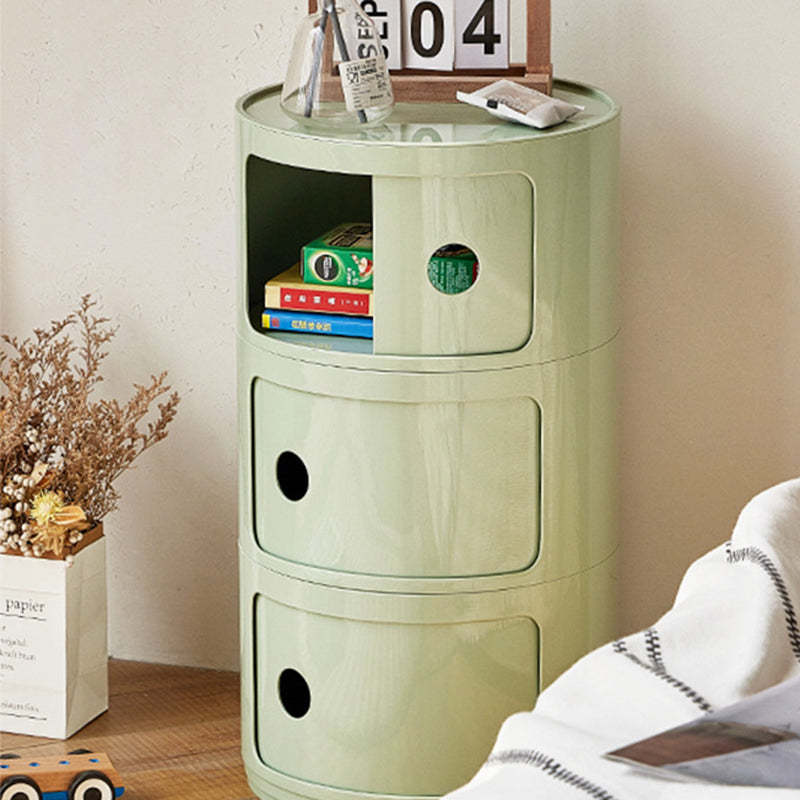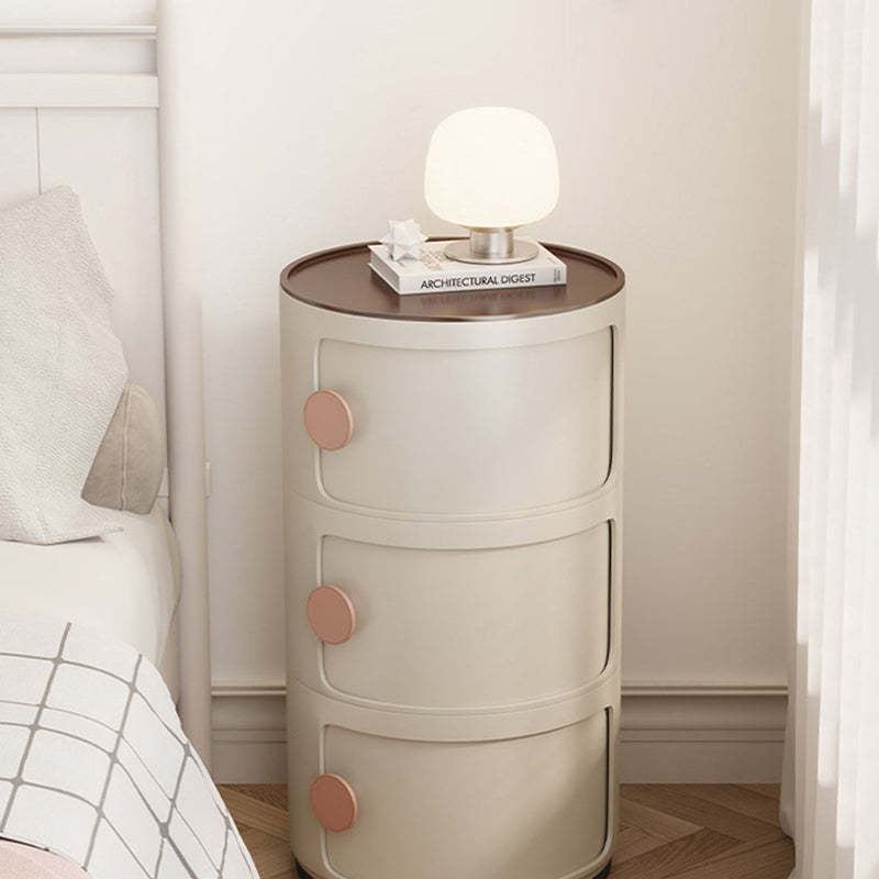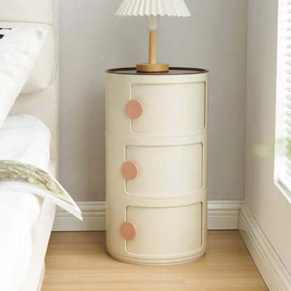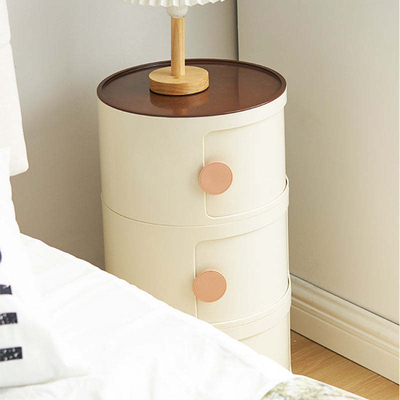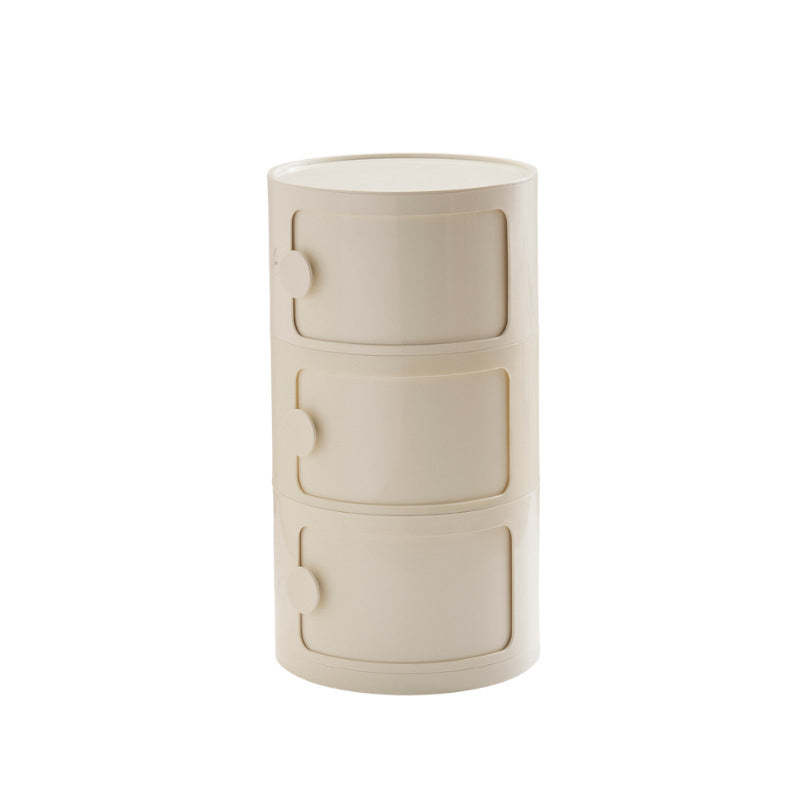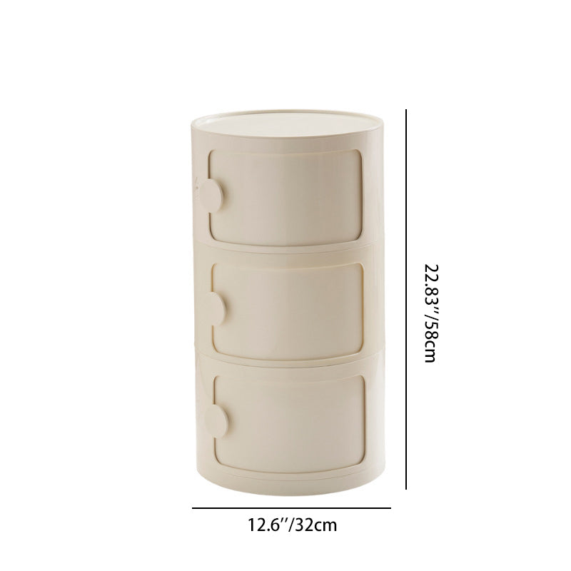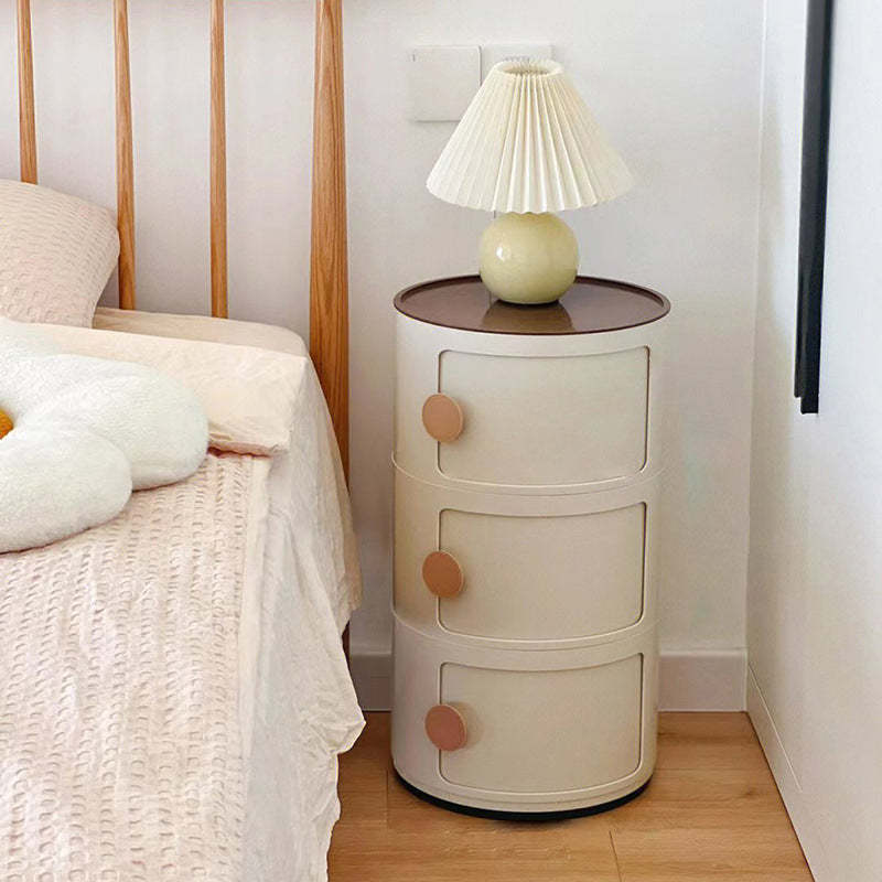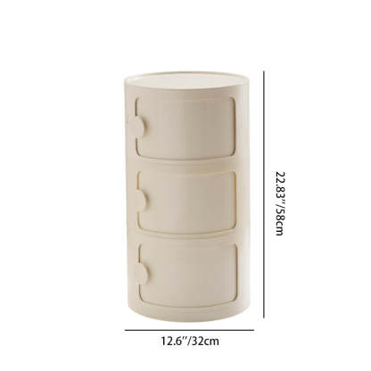 Contemporary Scandinavian Round Plastic Nightstand 3-Storage For Bedroom