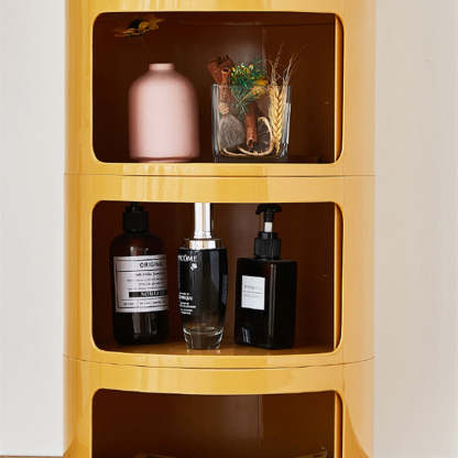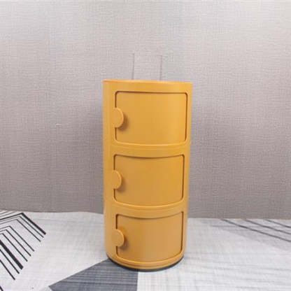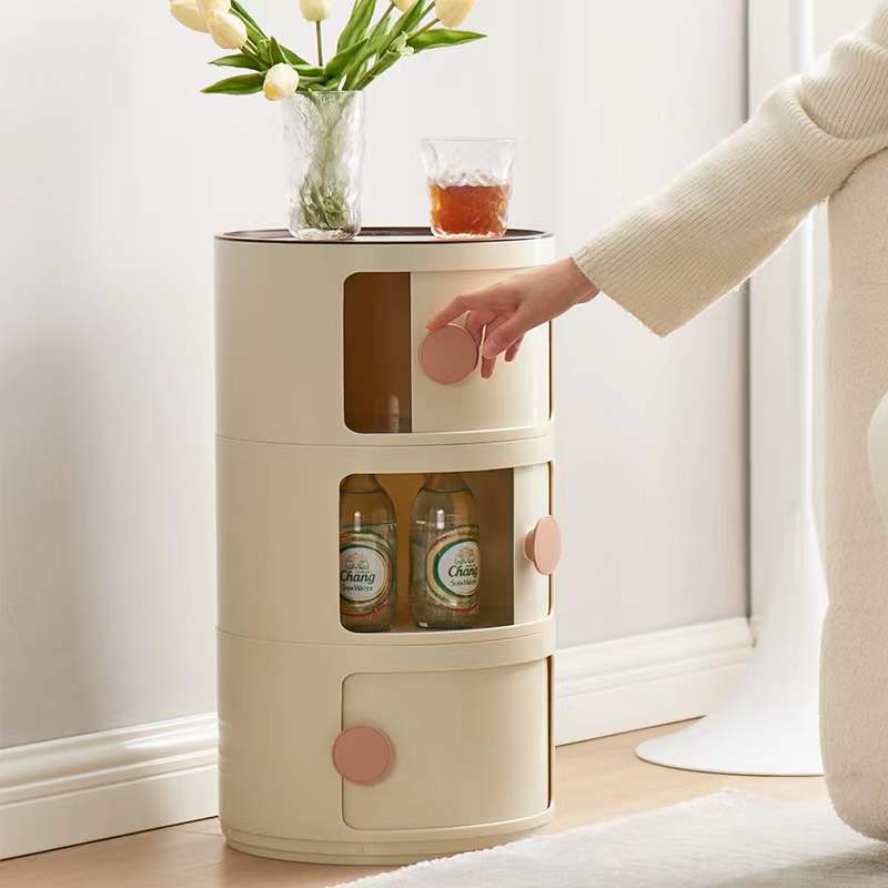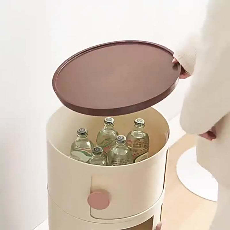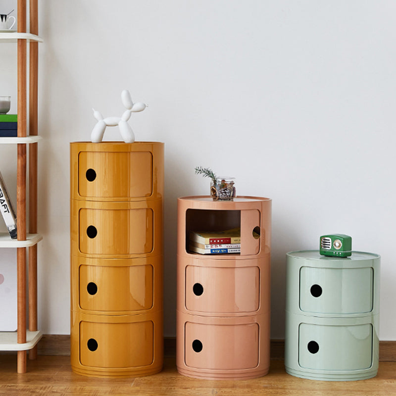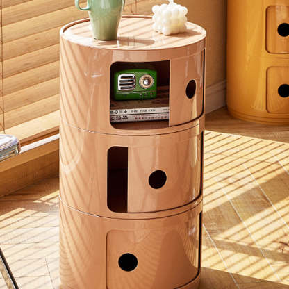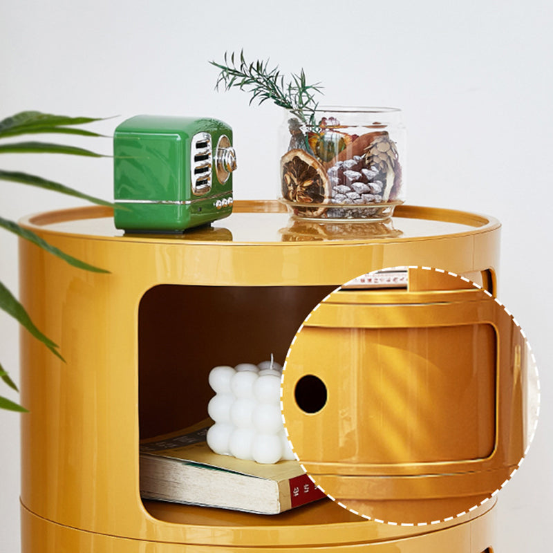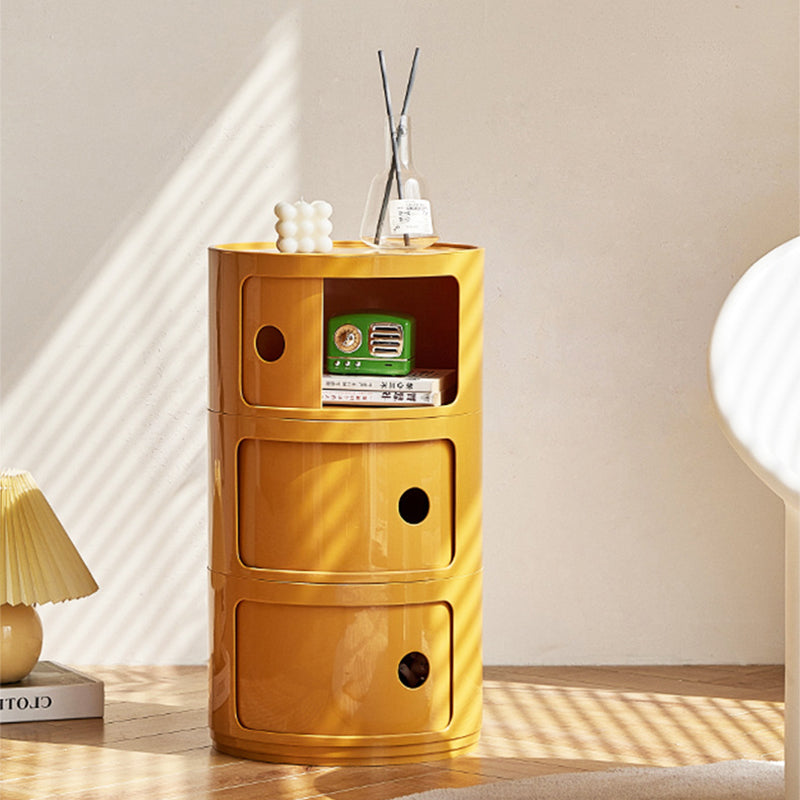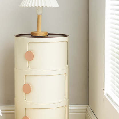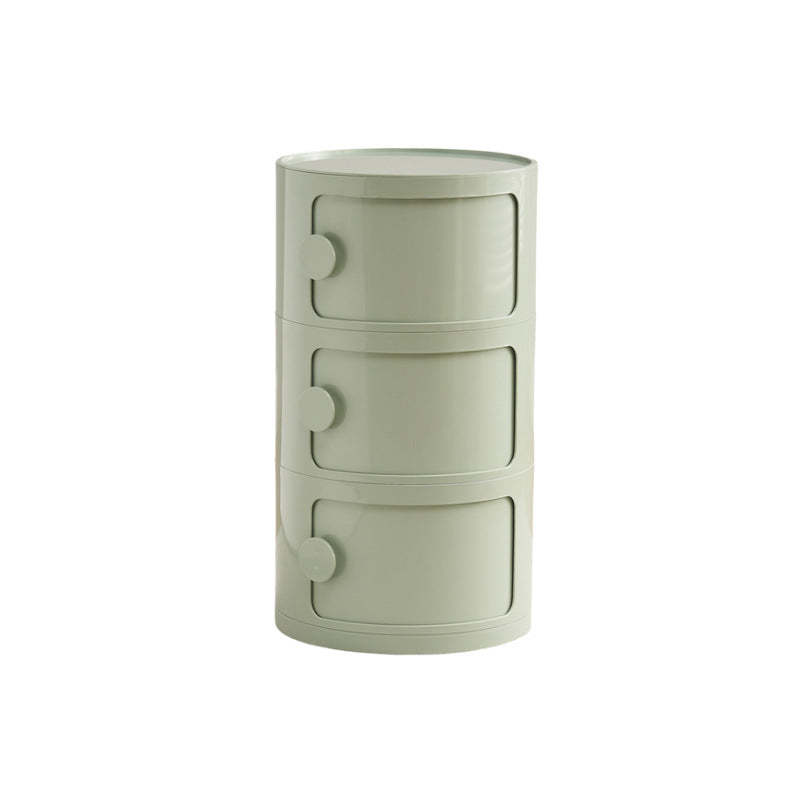Contemporary Scandinavian Round Plastic Nightstand 3-Storage For Bedroom