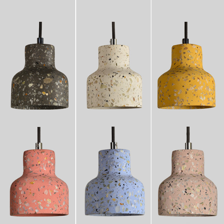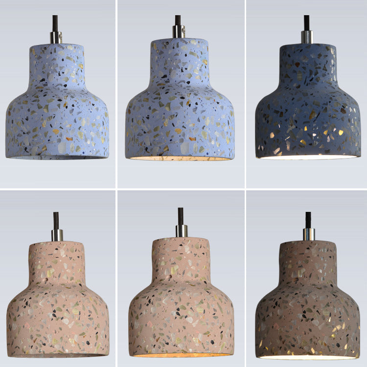 Contemporary Scandinavian Round Terrazzo Jade 1-Light Pendant Light For Living Room