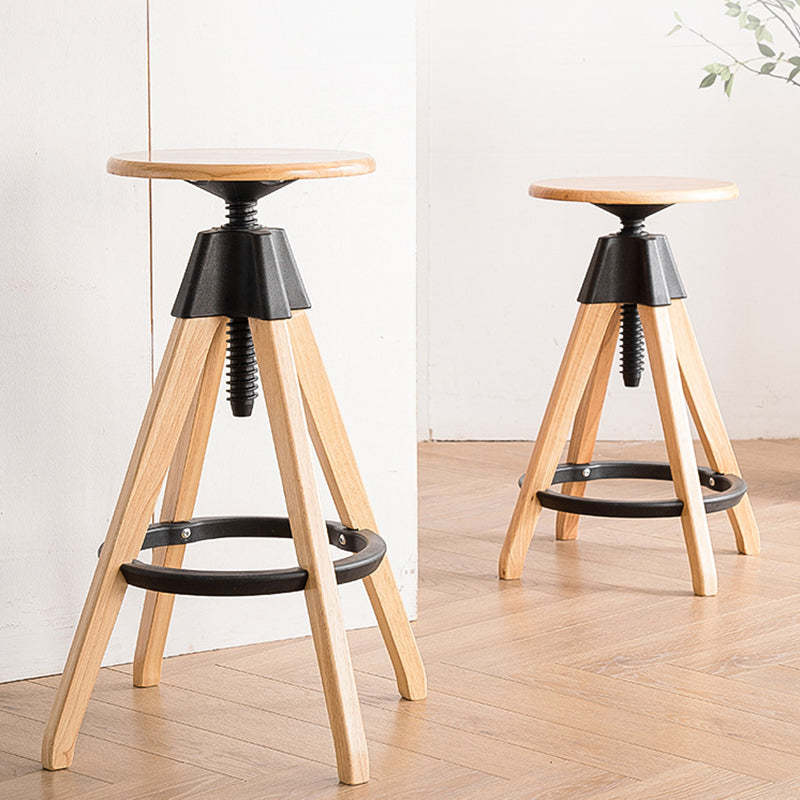 Contemporary Scandinavian Round Tripod Base Solid Wood Bar Stool Footrest For Dining Room
