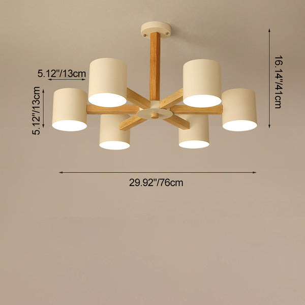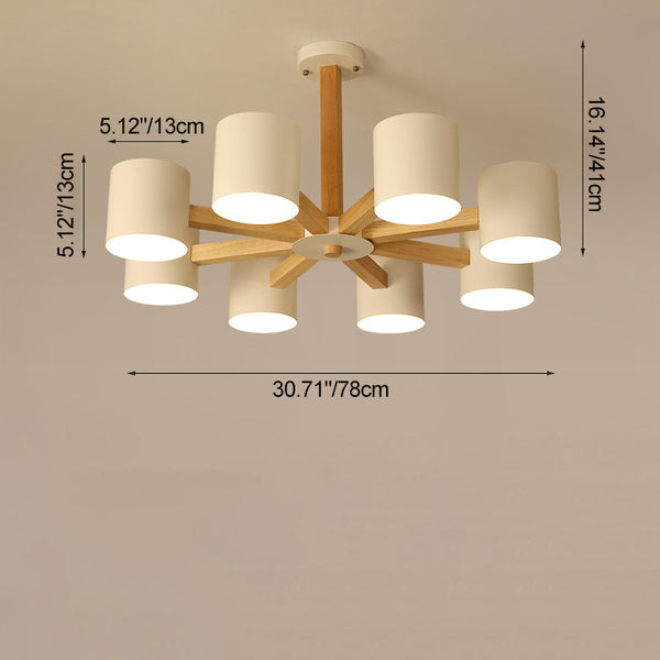 Contemporary Scandinavian Solid Wood Frame Hardware Cylinder Shade 6/8-Light Semi-Flush Mount Ceiling Light For Living Room