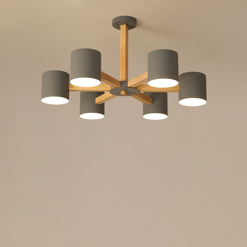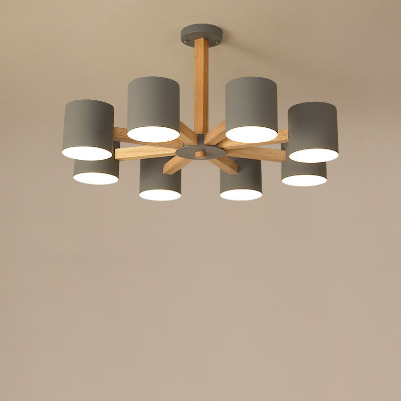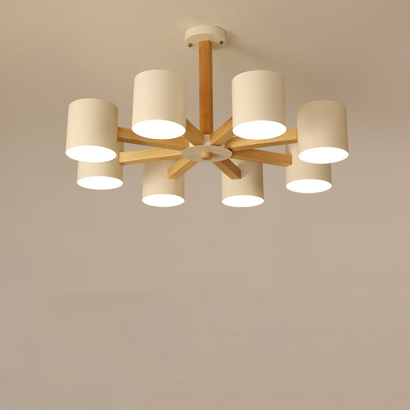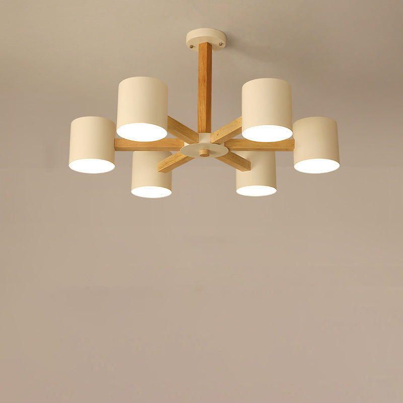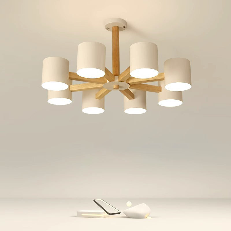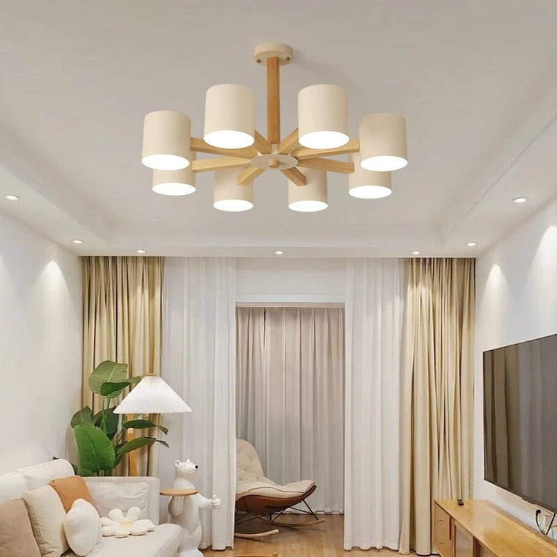Contemporary Scandinavian Solid Wood Frame Hardware Cylinder Shade 6/8-Light Semi-Flush Mount Ceiling Light For Living Room