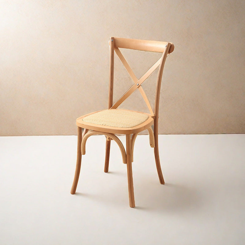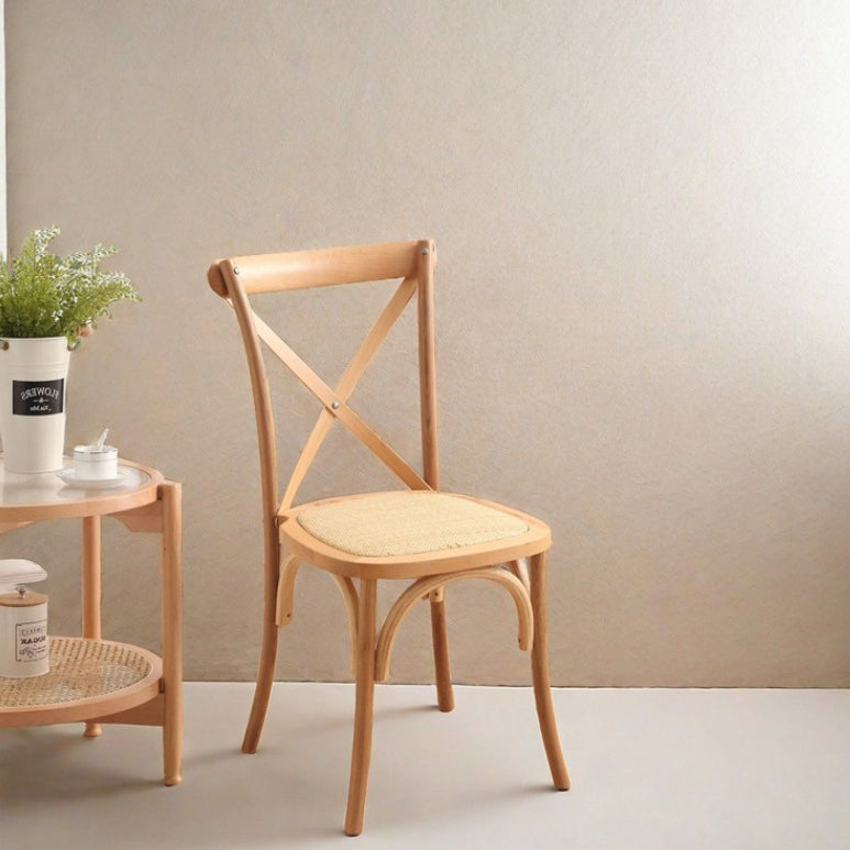 Contemporary Scandinavian Solid Wood Rattan Curved Square Dining Chair With Backrest For Dining Room