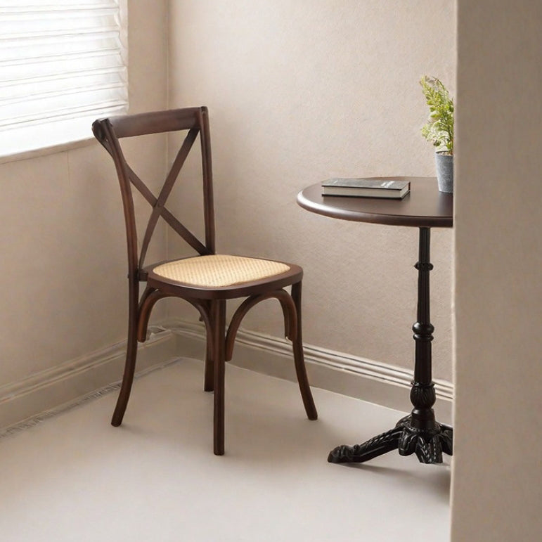 Crafted from durable solid wood with breathable rattan detailing. this curved square dining chair blends Scandinavian elegance with vintage charm. Available in walnut. natural. and black finishes. it features a supportive backrest and a sturdy frame built for everyday dining comfort.