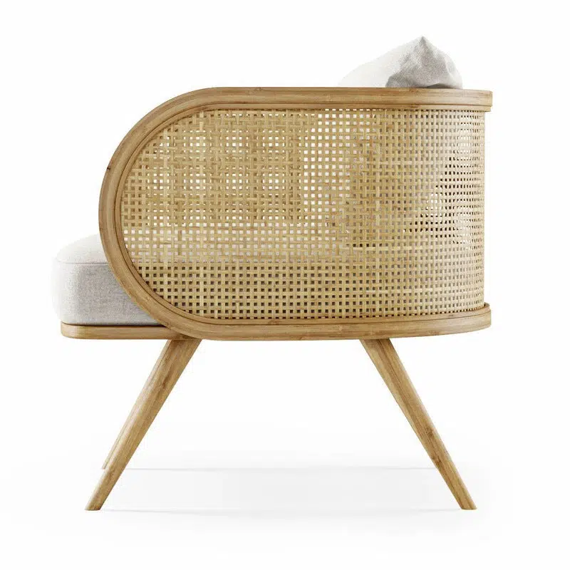 Contemporary Scandinavian Square Bent Half Round Fabric Rattan Wood Accent Chair Backrest Armrest For Living Room