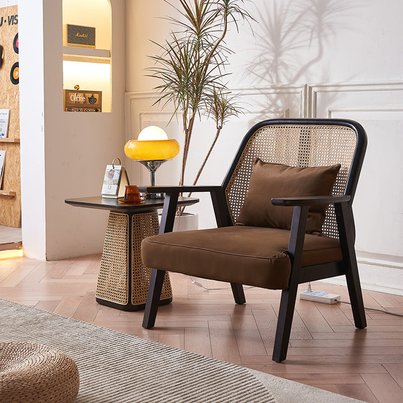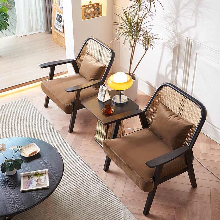 Contemporary Scandinavian Square Flannelette Solid Wood Rattan Ash Sponge Sofa Backrest Armrest For Living Room